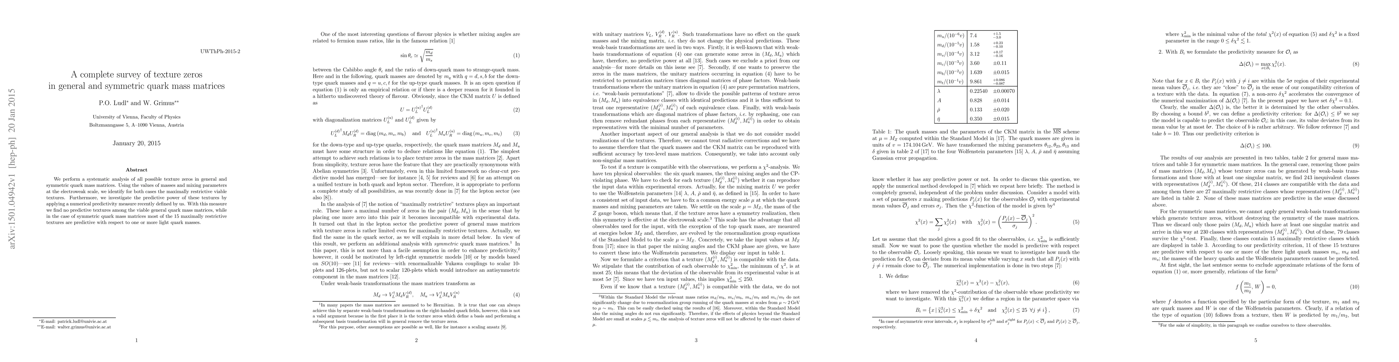This paper systematically analyzes texture zeros in general and symmetric quark mass matrices, identifying the most restrictive viable textures using electroweak scale parameters. It finds no predictive textures in general matrices but discovers that most of the 15 maximally restrictive textures in symmetric matrices are predictive for light quark masses.