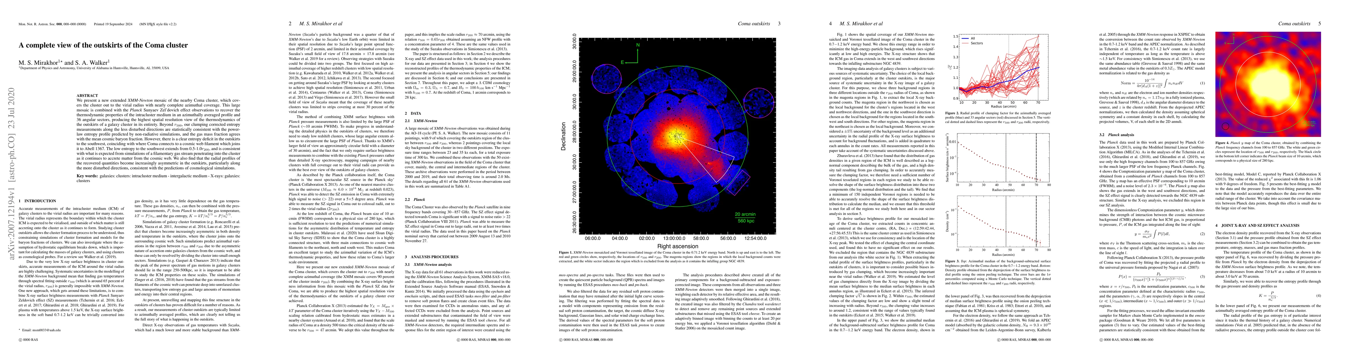 We present a new extended XMM-Newton mosaic of the nearby Coma cluster, which covers the cluster out to the virial radius with nearly complete azimuthal coverage. This large mosaic is combined with the Planck Sunyaev Zel'dovich effect observations to recover the thermodynamic properties of the intracluster medium in an azimuthally averaged profile and 36 angular sectors, producing the highest spatial resolution view of the thermodynamics of the outskirts of a galaxy cluster in its entirety. Beyond $r_{500}$, our clumping corrected entropy measurements along the less disturbed directions are statistically consistent with the power-law entropy profile predicted by non-radiative simulations, and the gas mass fraction agrees with the mean cosmic baryon fraction. However, there is a clear entropy deficit in the outskirts to the southwest, coinciding with where Coma connects to a cosmic web filament which joins it to Abell 1367. The low entropy to the southwest extends from 0.5-1.0$r_{200}$, and is consistent with what is expected from simulations of a filamentary gas stream penetrating into the cluster as it continues to accrete matter from the cosmic web. We also find that the radial profiles of the recovered quantities become increasingly asymmetric in the outskirts, particularly along the more disturbed directions, consistent with the predictions of cosmological simulations.