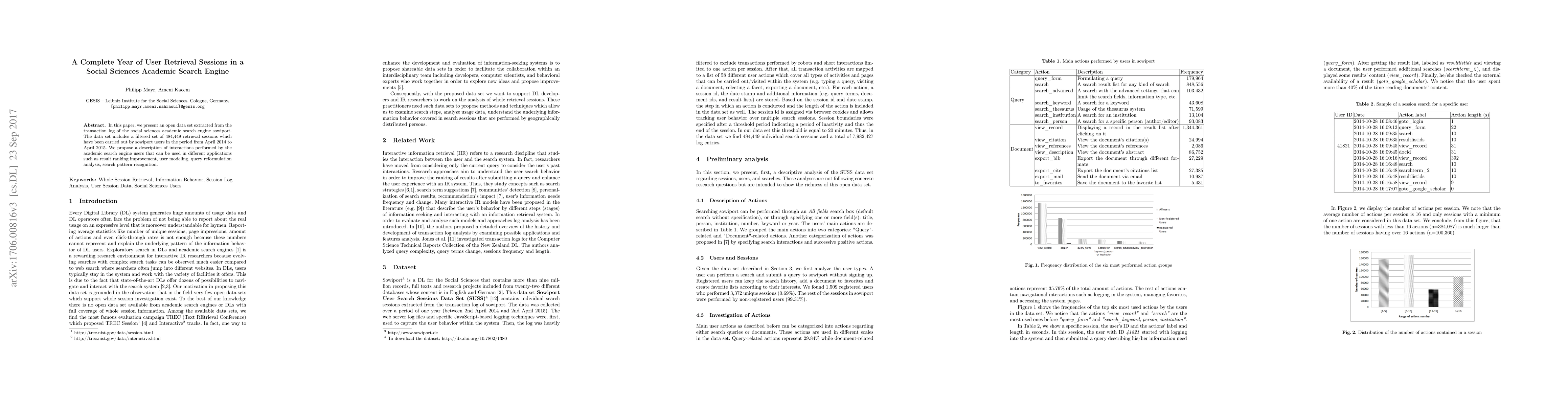 This paper introduces an open dataset from the sowiport social sciences academic search engine, comprising 484,449 user retrieval sessions from April 2014 to April 2015, aimed at enhancing applications like result ranking, user modeling, and search pattern recognition.