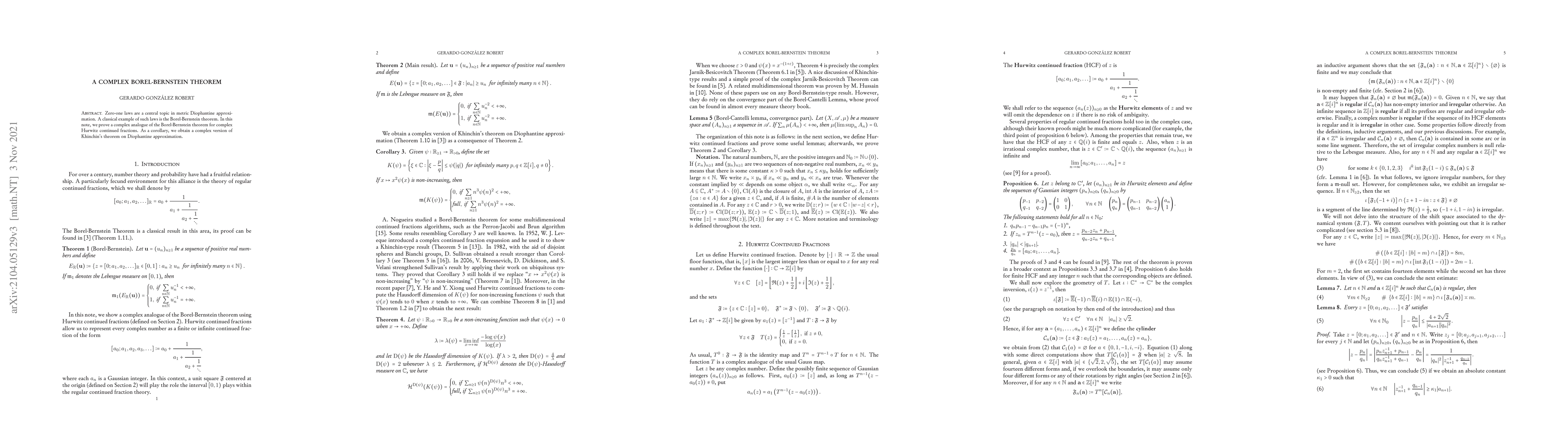 This paper proves a complex analogue of the Borel-Bernstein theorem for complex Hurwitz continued fractions, leading to a new version of Khinchin's theorem on Diophantine approximation.