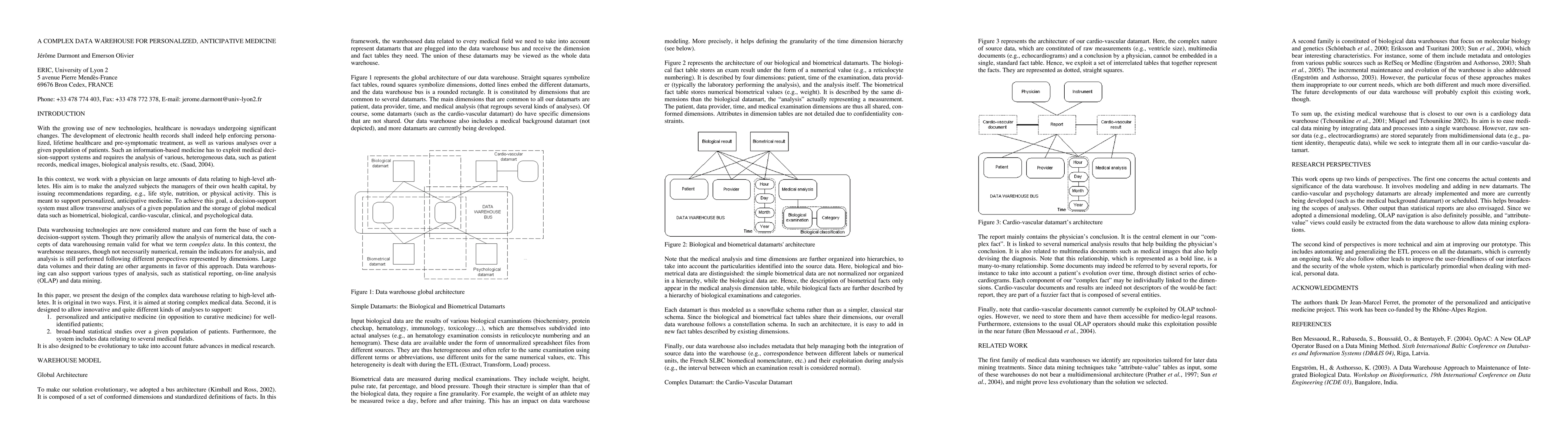 With the growing use of new technologies, healthcare is nowadays undergoing significant changes. Information-based medicine has to exploit medical decision-support systems and requires the analysis of various, heterogeneous data, such as patient records, medical images, biological analysis results, etc. In this paper, we present the design of the complex data warehouse relating to high-level athletes. It is original in two ways. First, it is aimed at storing complex medical data. Second, it is designed to allow innovative and quite different kinds of analyses to support: (1) personalized and anticipative medicine (in opposition to curative medicine) for well-identified patients; (2) broad-band statistical studies over a given population of patients. Furthermore, the system includes data relating to several medical fields. It is also designed to be evolutionary to take into account future advances in medical research.