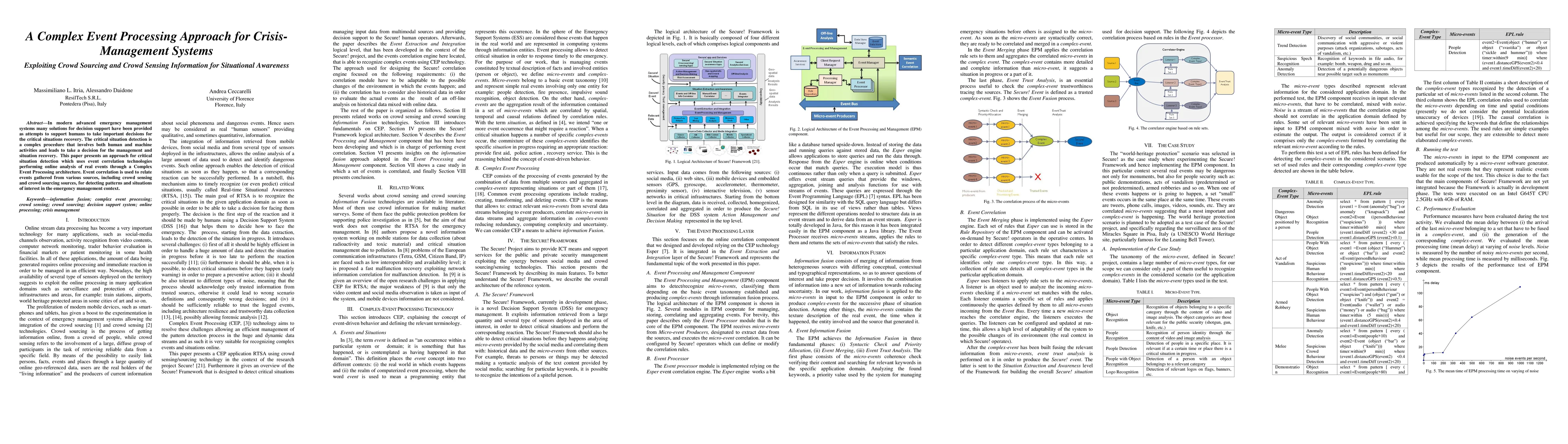This paper proposes a Complex Event Processing (CEP) approach for crisis-management systems that leverages event correlation to analyze real-time events from diverse sources, including crowd sensing, to detect critical situations and support decision-making in emergency management.