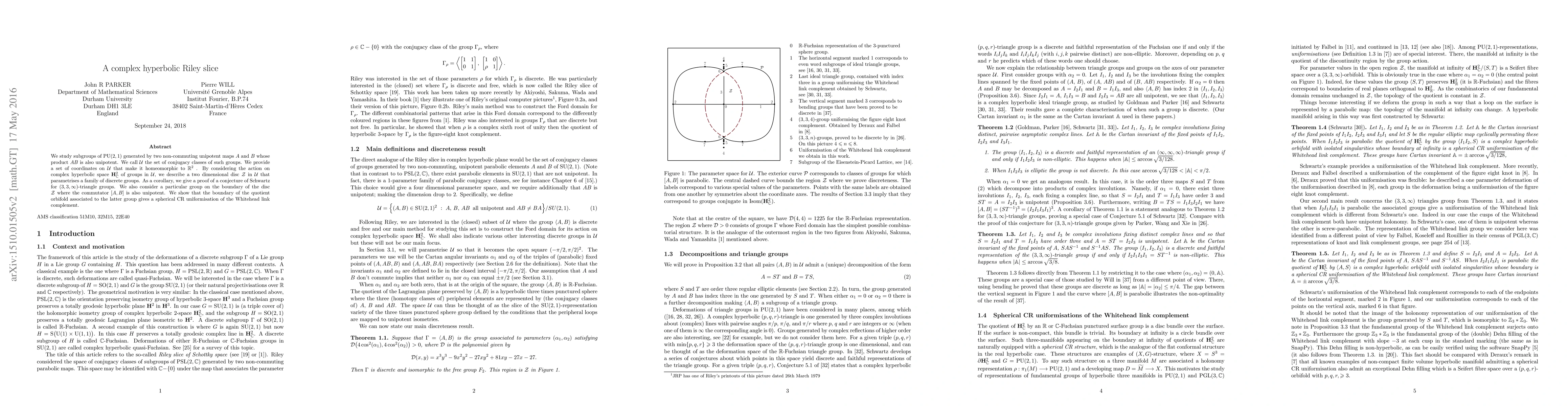 We study subgroups of ${\rm PU}(2,1)$ generated by two non-commuting unipotent maps $A$ and $B$ whose product $AB$ is also unipotent. We call $\mathcal{U}$ the set of conjugacy classes of such groups. We provide a set of coordinates on $\mathcal{U}$ that make it homeomorphic to $\mathbb{R}^2$ . By considering the action on complex hyperbolic space $\mathbf{H}^2_{\mathbb{C}}$ of groups in $\mathcal{U}$, we describe a two dimensional disc ${\mathcal Z}$ in $\mathcal{U}$ that parametrises a family of discrete groups. As a corollary, we give a proof of a conjecture of Schwartz for $(3,3,\infty)$-triangle groups. We also consider a particular group on the boundary of the disc ${\mathcal Z}$ where the commutator $[A,B]$ is also unipotent. We show that the boundary of the quotient orbifold associated to the latter group gives a spherical CR uniformisation of the Whitehead link complement.