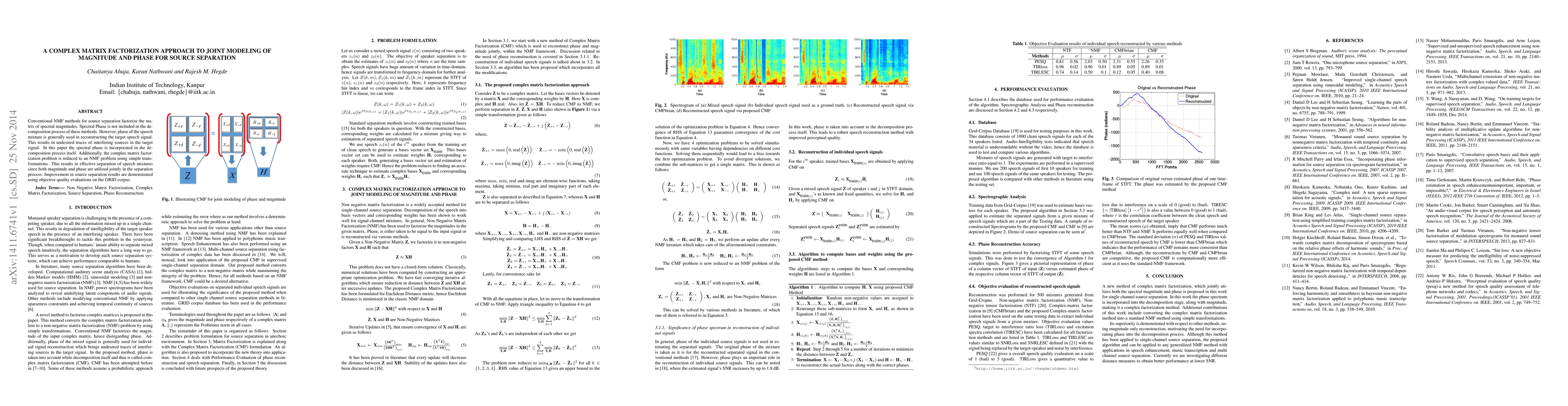 Conventional NMF methods for source separation factorize the matrix of spectral magnitudes. Spectral Phase is not included in the decomposition process of these methods. However, phase of the speech mixture is generally used in reconstructing the target speech signal. This results in undesired traces of interfering sources in the target signal. In this paper the spectral phase is incorporated in the decomposition process itself. Additionally, the complex matrix factorization problem is reduced to an NMF problem using simple transformations. This results in effective separation of speech mixtures since both magnitude and phase are utilized jointly in the separation process. Improvement in source separation results are demonstrated using objective quality evaluations on the GRID corpus.
