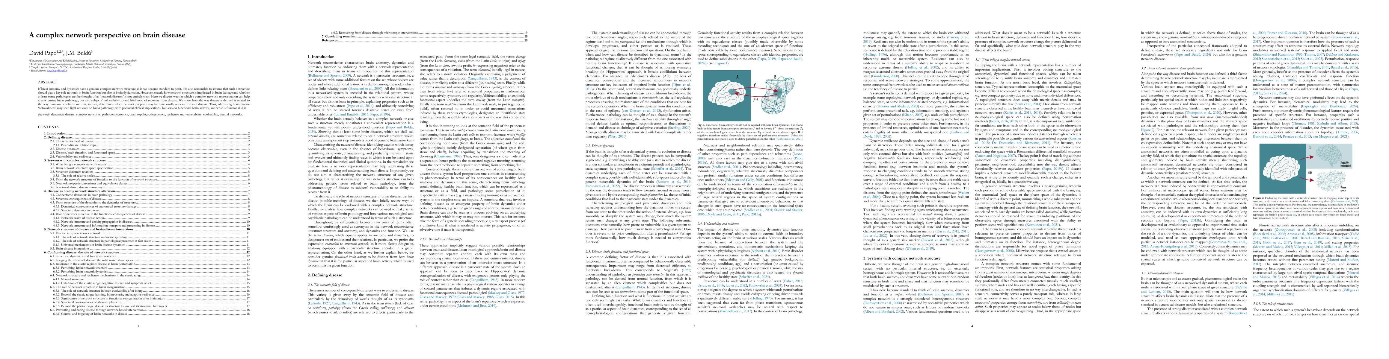 This paper discusses the application of complex network theory to understand brain diseases, suggesting that network structure plays a crucial role in both brain function and dysfunction. It explores how disease definition impacts functional relevance of network properties, potentially offering clinical insights into brain pathology and recovery.