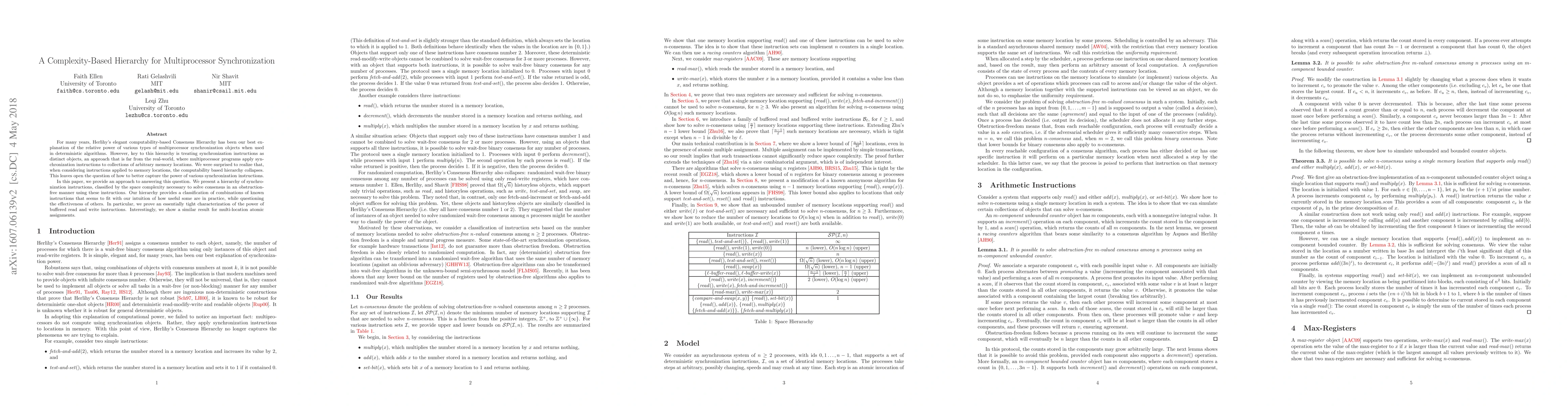 This paper proposes a complexity-based hierarchy for multiprocessor synchronization, moving beyond computability-based approaches to better reflect real-world usage of synchronization instructions on memory locations. It classifies synchronization instructions by their space complexity in solving consensus, providing a new perspective on their practical effectiveness.