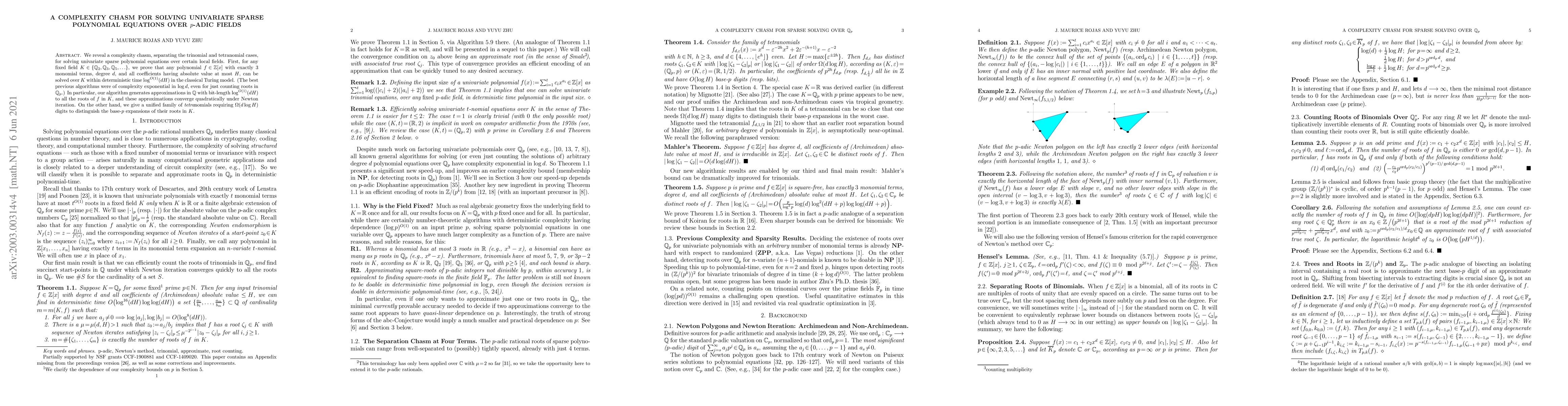 Researchers found a complexity chasm in solving univariate sparse polynomial equations over certain local fields, with some cases requiring exponential time but others solvable in logarithmic time.
