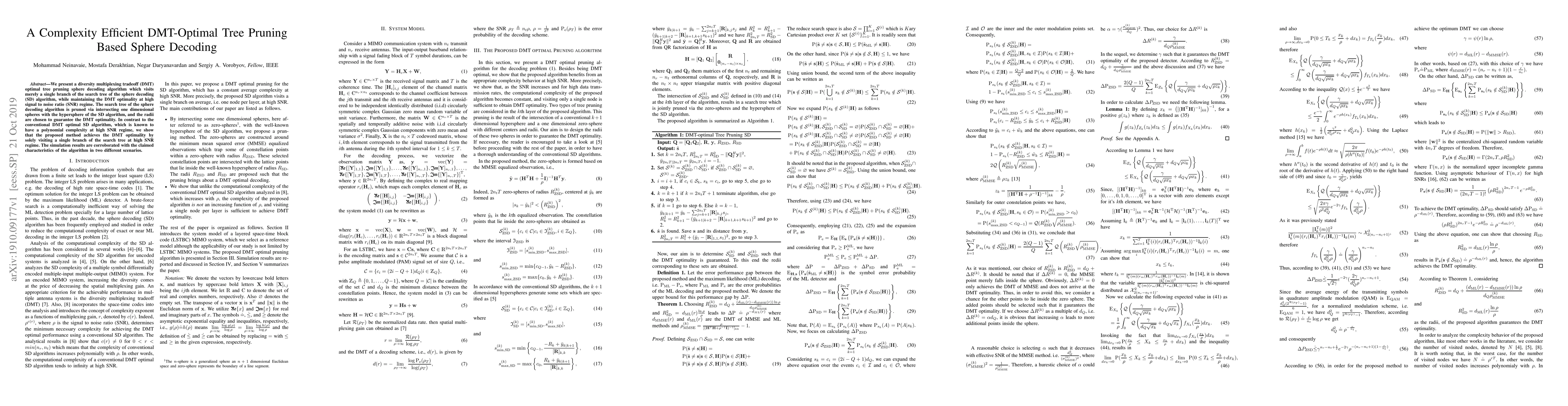 We present a diversity multiplexing tradeoff (DMT) optimal tree pruning sphere decoding algorithm which visits merely a single branch of the search tree of the sphere decoding (SD) algorithm, while maintaining the DMT optimality at high signal to noise ratio (SNR) regime. The search tree of the sphere decoding algorithm is pruned via intersecting one dimensional spheres with the hypersphere of the SD algorithm, and the radii are chosen to guarantee the DMT optimality. In contrast to the conventional DMT optimal SD algorithm, which is known to have a polynomial complexity at high SNR regime, we show that the proposed method achieves the DMT optimality by solely visiting a single branch of the search tree at high SNR regime. The simulation results are corroborated with the claimed characteristics of the algorithm in two different scenarios.