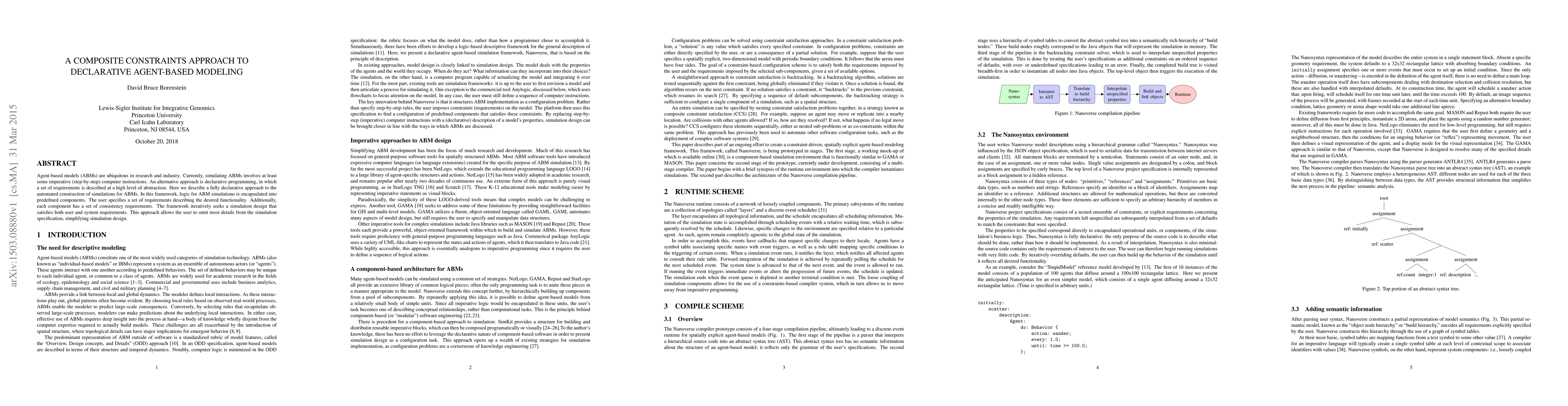 This paper proposes a fully declarative framework for agent-based modeling (ABM) that automates simulation construction by encapsulating logic into predefined components. The framework iteratively finds a simulation design that satisfies both user-defined requirements and predefined consistency constraints, simplifying the simulation design process.