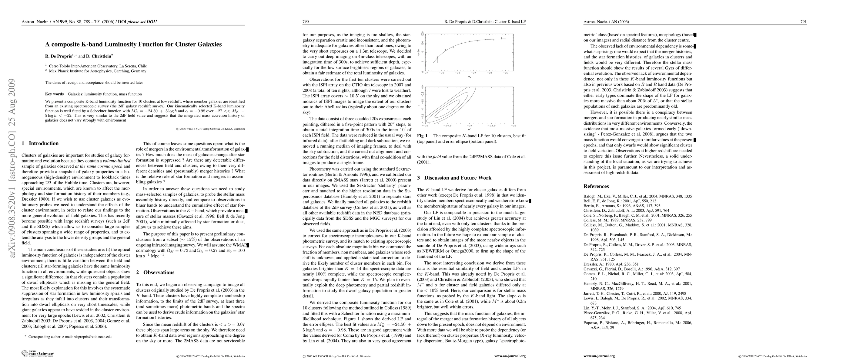 This study presents a composite K-band luminosity function for galaxies in 10 low-redshift clusters, derived from the 2dF galaxy redshift survey. The function is well described by a Schechter function, indicating that the integrated mass accretion history of galaxies remains consistent across different environments.