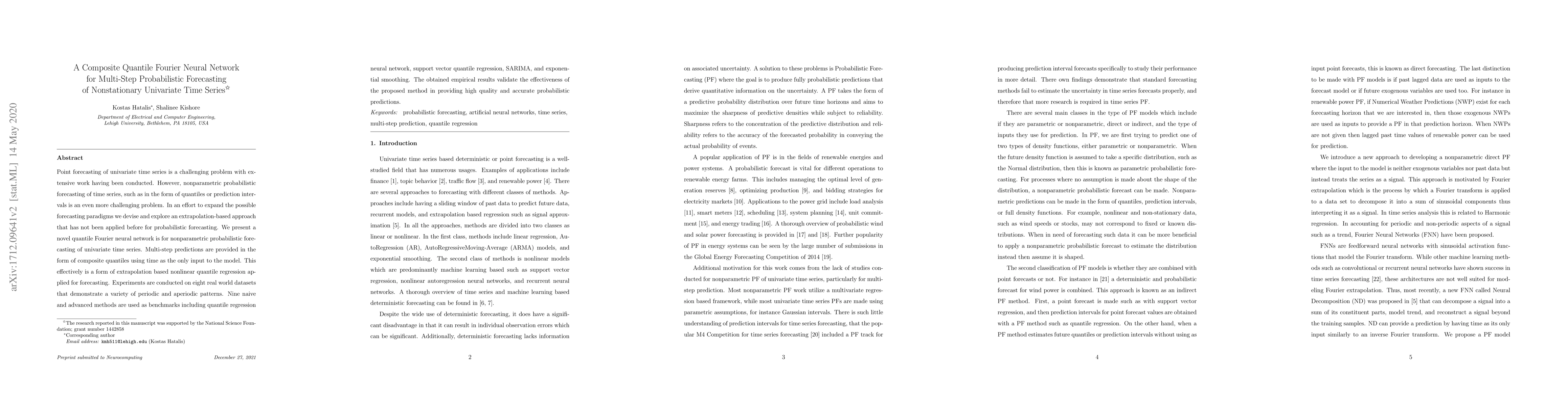 This paper introduces a novel quantile Fourier neural network for multi-step probabilistic forecasting of nonstationary univariate time series, demonstrating its effectiveness through experiments on eight real-world datasets. The method provides composite quantiles for predictions, outperforming nine benchmark methods.
