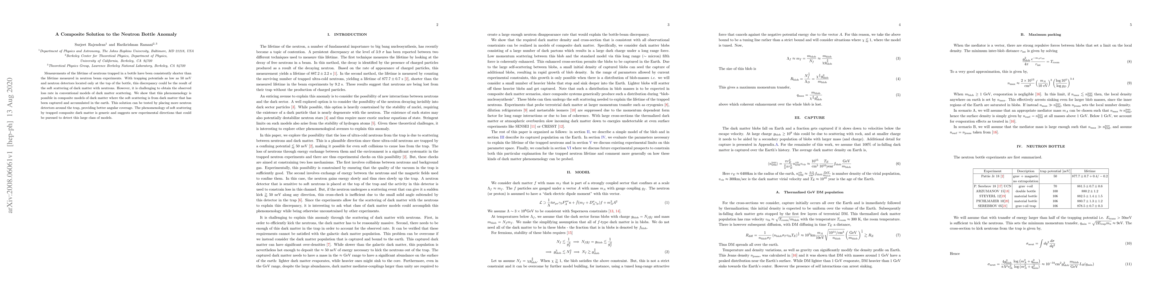 Measurements of the lifetime of neutrons trapped in a bottle have been consistently shorter than the lifetime measured in neutron beam experiments. With trapping potentials as low as 50 neV and neutron detectors located only at the top of the bottle, this discrepancy could be the result of the soft scattering of dark matter with neutrons. However, it is challenging to obtain the observed loss rate in conventional models of dark matter scattering. We show that this phenomenology is possible in composite models of dark matter where the soft scattering is from dark matter that has been captured and accumulated in the earth. This solution can be tested by placing more neutron detectors around the trap, providing better angular coverage. The phenomenology of soft scattering by trapped composite dark matter is generic and suggests new experimental directions that could be pursued to detect this large class of models.