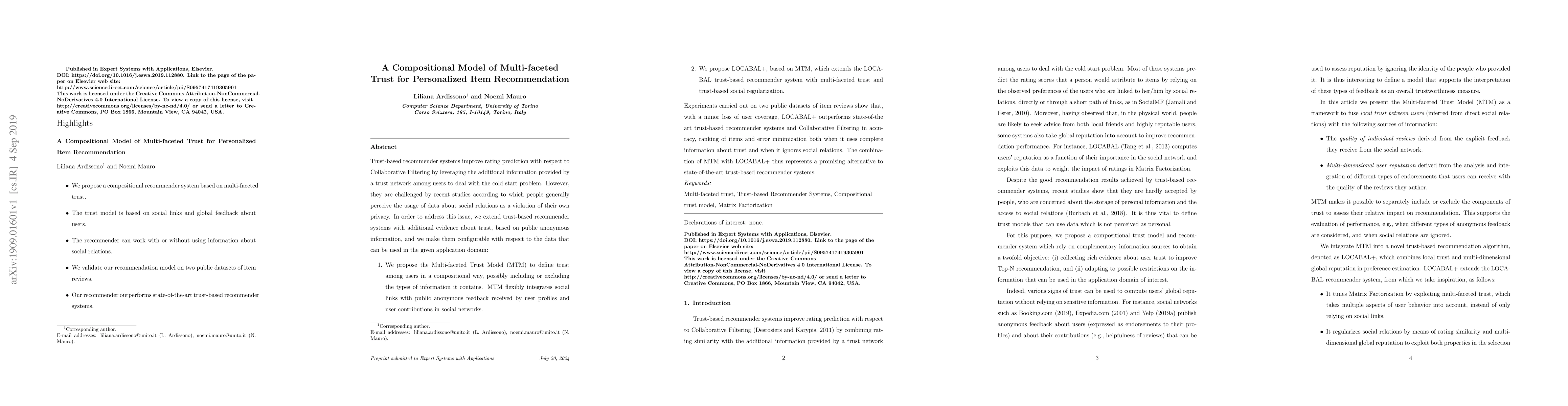 This paper proposes a Multi-faceted Trust Model (MTM) to enhance trust-based recommender systems by integrating public anonymous data, addressing privacy concerns. LOCABAL+ leverages MTM to improve recommendation accuracy and ranking, outperforming existing methods while maintaining flexibility in data usage.
