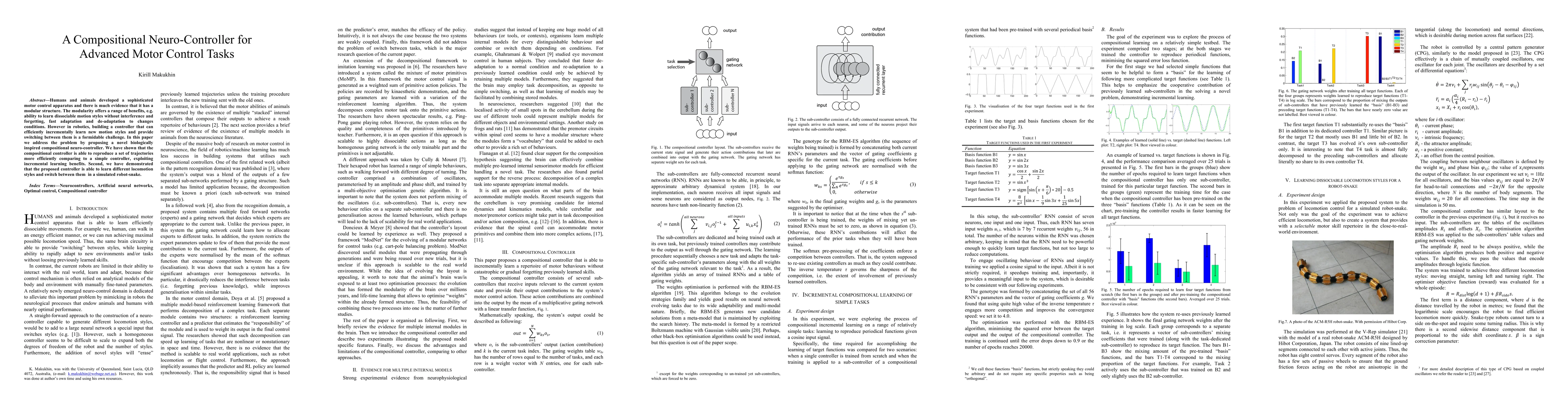 Humans and animals developed a sophisticated motor control apparatus and there is much evidence that it has a modular structure. The modularity offers a range of benefits, e.g. ability to learn dissociable motion styles without interference and forgetting, fast adaptation and de-adaptation to changes conditions. However in robotics, building a controller that can efficiently incrementally learn new motion styles and provide switching between them is a formidable challenge. In this paper we address the problem by proposing a novel biologically inspired compositional neuro-controller. We have shown that the compositional controller is able to reproduce a set of trajectories more efficiently comparing to a simple controller, exploiting incremental learning benefits. Second, we have demonstrated that the proposed controller is able to learn different locomotion styles and switch between them in a simulated robot-snake.