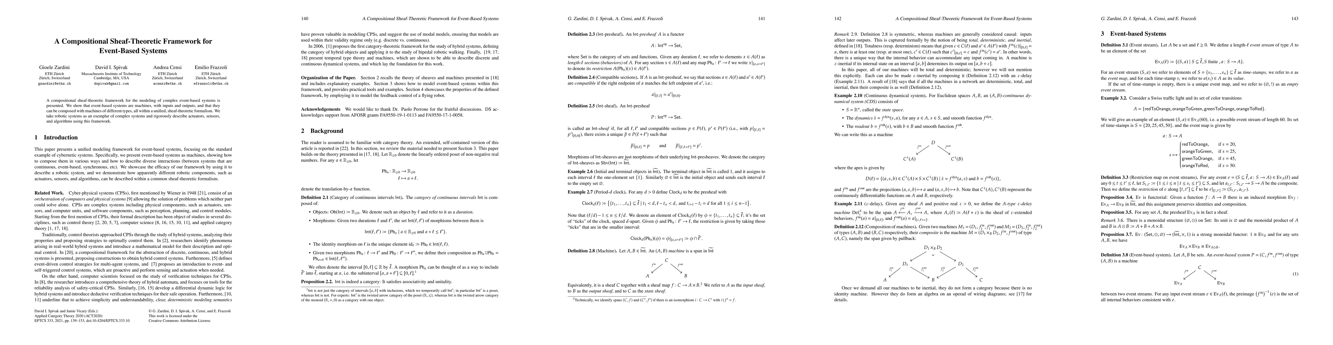 A compositional sheaf-theoretic framework for the modeling of complex event-based systems is presented. We show that event-based systems are machines, with inputs and outputs, and that they can be composed with machines of different types, all within a unified, sheaf-theoretic formalism. We take robotic systems as an exemplar of complex systems and rigorously describe actuators, sensors, and algorithms using this framework.