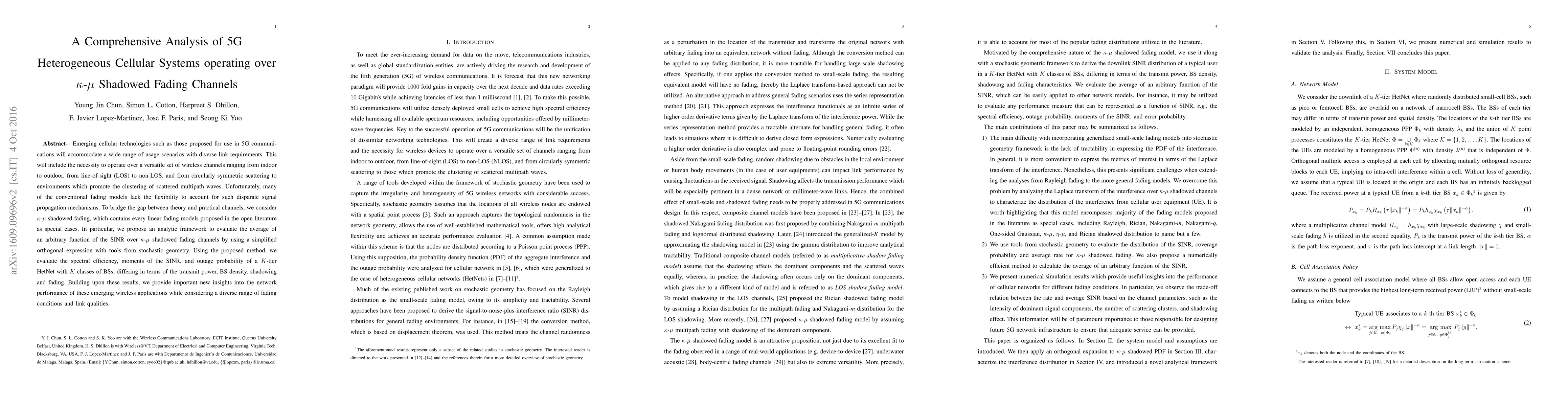 Emerging cellular technologies such as those proposed for use in 5G communications will accommodate a wide range of usage scenarios with diverse link requirements. This will include the necessity to operate over a versatile set of wireless channels ranging from indoor to outdoor, from line-of-sight (LOS) to non-LOS, and from circularly symmetric scattering to environments which promote the clustering of scattered multipath waves. Unfortunately, many of the conventional fading models adopted in the literature to develop network models lack the flexibility to account for such disparate signal propagation mechanisms. To bridge the gap between theory and practical channels, we consider $\kappa$-$\mu$ shadowed fading, which contains as special cases, the majority of the linear fading models proposed in the open literature, including Rayleigh, Rician, Nakagami-m, Nakagami-q, One-sided Gaussian, $\kappa$-$\mu$, $\eta$-$\mu$, and Rician shadowed to name but a few. In particular, we apply an orthogonal expansion to represent the $\kappa$-$\mu$ shadowed fading distribution as a simplified series expression. Then using the series expressions with stochastic geometry, we propose an analytic framework to evaluate the average of an arbitrary function of the SINR over $\kappa$-$\mu$ shadowed fading channels. Using the proposed method, we evaluate the spectral efficiency, moments of the SINR, bit error probability and outage probability of a $K$-tier HetNet with $K$ classes of BSs, differing in terms of the transmit power, BS density, shadowing characteristics and small-scale fading. Building upon these results, we provide important new insights into the network performance of these emerging wireless applications while considering a diverse range of fading conditions and link qualities.