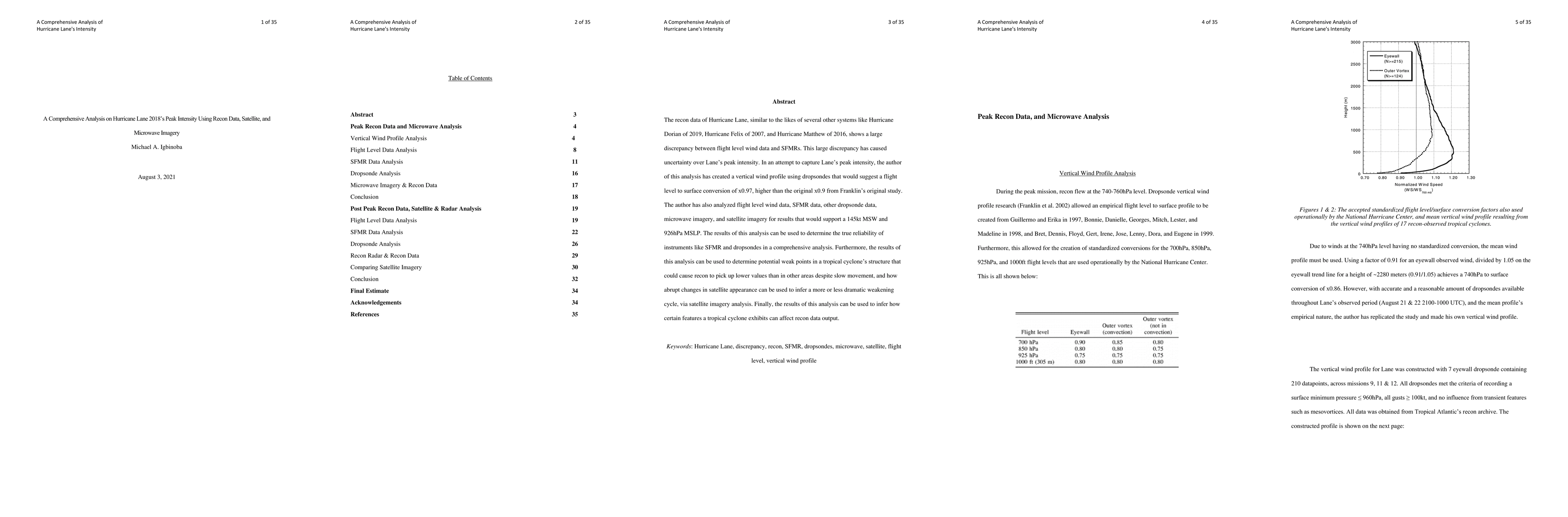 Tropical cyclone reconnaissance data, such as that of Hurricane Lane, often exhibits discrepancies between flight-level wind measurements and SFMR data, leading to uncertainty in determining peak intensity. In this study, I analyze Hurricane Lane's recon data alongside similar cases like Hurricane Dorian (2019), Hurricane Felix (2007), and Hurricane Matthew (2016). By integrating flight-level wind data, SFMR observations, dropsonde data, microwave and satellite imagery, I propose a refined flight-level to surface wind conversion factor of 0.97, contrasting with the commonly used value of 0.9. My analysis suggests a peak intensity of 145 knots maximum sustained wind (MSW) and a minimum sea level pressure (MSLP) of 926 hPa for Hurricane Lane. I also examine how certain features of tropical cyclones can influence reconnaissance data output and infer potential weaknesses in the storm structure. My findings underscore the importance of comprehensive analysis in improving the reliability of reconnaissance instruments and understanding tropical cyclone behavior.