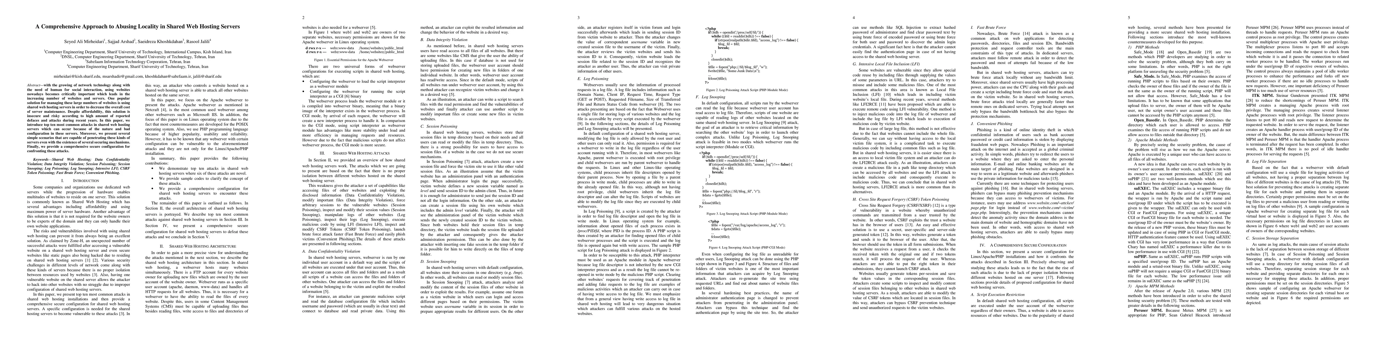 This paper identifies and analyzes the top ten common attacks on shared web hosting servers, highlighting vulnerabilities due to improper configuration. It also presents scenarios demonstrating how these attacks can succeed despite security measures, and concludes with a comprehensive secure configuration to mitigate these threats.