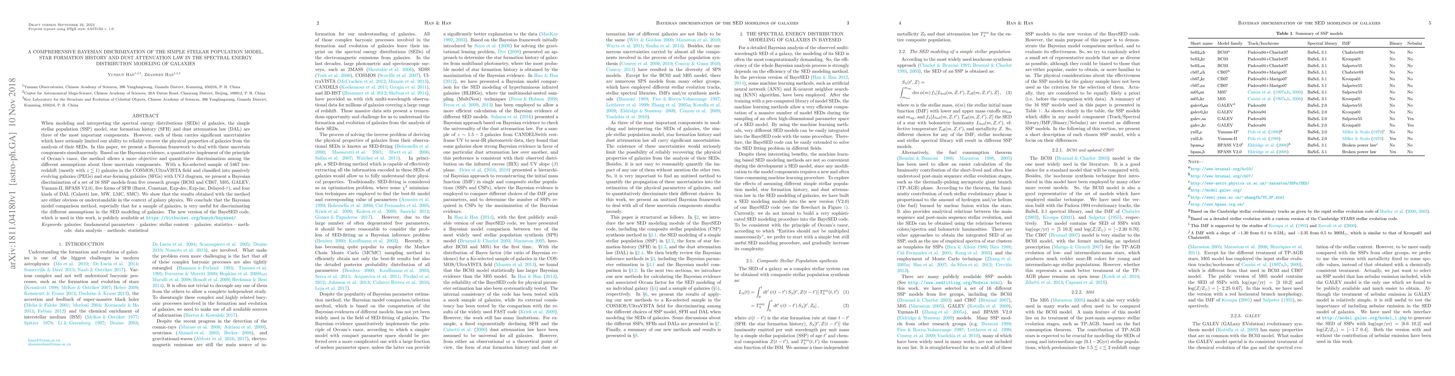 This paper introduces a Bayesian framework to simultaneously model uncertainties in simple stellar population models, star formation histories, and dust attenuation laws when analyzing galaxies' spectral energy distributions. The method effectively discriminates among various assumptions using a sample of 5467 low-redshift galaxies, demonstrating its utility in SED modeling.