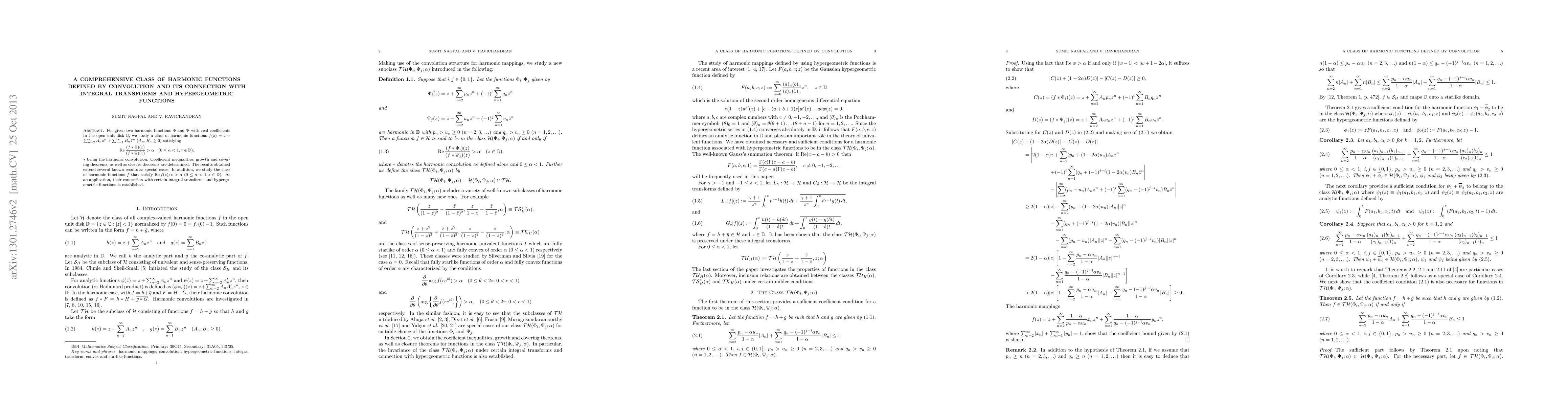 This paper explores a class of harmonic functions defined via convolution of two given harmonic functions, establishing coefficient inequalities, growth theorems, and closure properties. It also connects these functions to integral transforms and hypergeometric functions, extending existing results in the field.