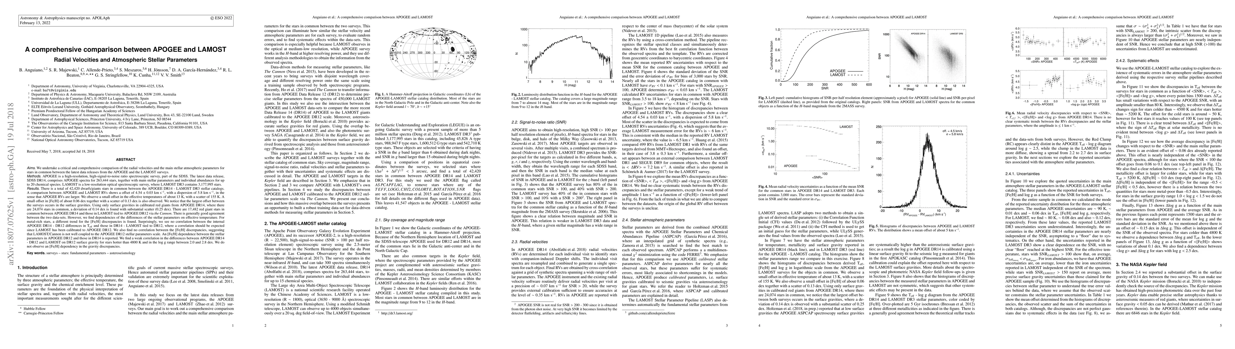 We undertake a critical and comprehensive comparison of the radial velocities and the main stellar atmospheric parameters for stars in common between the latest data releases from the APOGEE and the LAMOST surveys. There is a total of 42,420 dwarfs/giants stars in common between the APOGEE DR14 - LAMOST DR3 stellar catalogs. A comparison between the RVs shows an offset of 4.54 $\pm$ 0.03 km/s, with a dispersion of 5.8 km/s, in the sense that APOGEE RVs are larger. We observe a small offset in the Teff of about 13 K, with a scatter of 155 K. Small offset in [Fe/H] of about 0.06 dex together with a scatter of 0.13 dex is also observed. We notice that the largest offset between the surveys occurs in the surface gravities. Using only surface gravities in calibrated red giants from APOGEE DR14, where there are 24,074 stars in common, a deviation of 0.14 dex is found with substantial scatter. There are 17,482 red giant stars in common between APOGEE DR14 and those in LAMOST tied to APOGEE DR12 via the Cannon. There is generally good agreement between the two data-sets. However, we find dependencies of the differences of the stellar parameters on effective temperature. For metal-rich stars, a different trend for the [Fe/H] discrepancies is found. Surprisingly, we see no correlation between the internal APOGEE DR14 - DR12 differences in Teff and those in DR14 - LAMOST tied to DR12, where a correlation should be expected since LAMOST has been calibrated to APOGEE DR12. We also find no correlation between the [Fe/H] discrepancies, suggesting that LAMOST/Cannon is not well coupled to the APOGEE DR12 stellar parameters scale. A [Fe/H] dependence between the stellar parameters in APOGEE DR12 and those in DR14 is reported. We find a weak correlation in the differences between APOGEE DR14 - DR12 and LAMOST on DR12 surface gravity for stars hotter than 4800 K and in the log g range between 2.0 and 2.8.