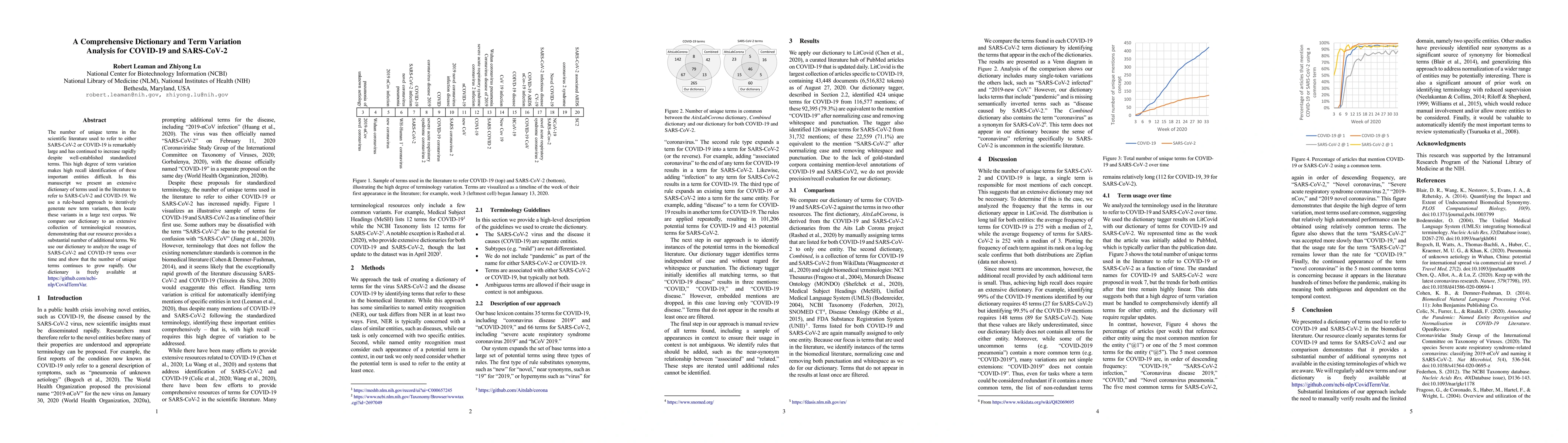 A comprehensive dictionary of COVID-19 and SARS-CoV-2 terms was created to address term variation in scientific literature, finding that unique terms continue to grow rapidly over time.
