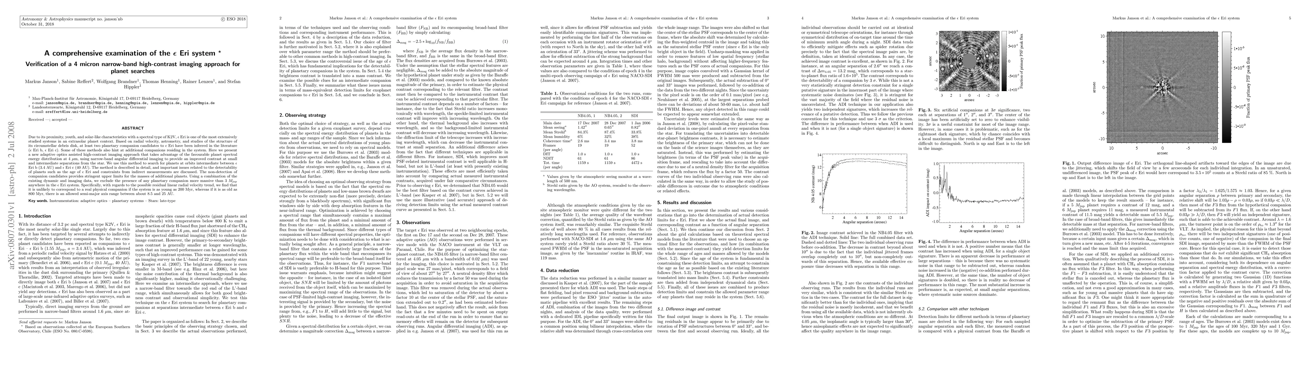 Due to its proximity, youth, and solar-like characteristics with a spectral type of K2V, Eps Eri is one of the most extensively studied systems in an extrasolar planet context. Based on radial velocity, astrometry, and studies of the structure of its circumstellar debris disk, at least two planetary companion candidates to Eps Eri have been inferred in the literature (Eps Eri b, Eps Eri c). Some of these methods also hint at additional companions residing in the system. Here we present a new adaptive optics assisted high-contrast imaging approach that takes advantage of the favourable planet spectral energy distribution at 4 microns, using narrow-band angular differential imaging to provide an improved contrast at small and intermediate separations from the star. We use this method to search for planets at orbits intermediate between Eps Eri b (3.4 AU) and Eps Eri c (40 AU). The method is described in detail, and important issues related to the detectability of planets such as the age of Eps Eri and constraints from indirect measurements are discussed. The non-detection of companion candidates provides stringent upper limits for the masses of additional planets. Using a combination of the existing dynamic and imaging data, we exclude the presence of any planetary companion more massive than 3 Mjup anywhere in the Eps Eri system. Specifically, with regards to the possible residual linear radial velocity trend, we find that it is unlikely to correspond to a real physical companion if the system is as young as 200 Myr, whereas if it is as old as 800 Myr, there is an allowed semi-major axis range between about 8.5 and 25 AU.