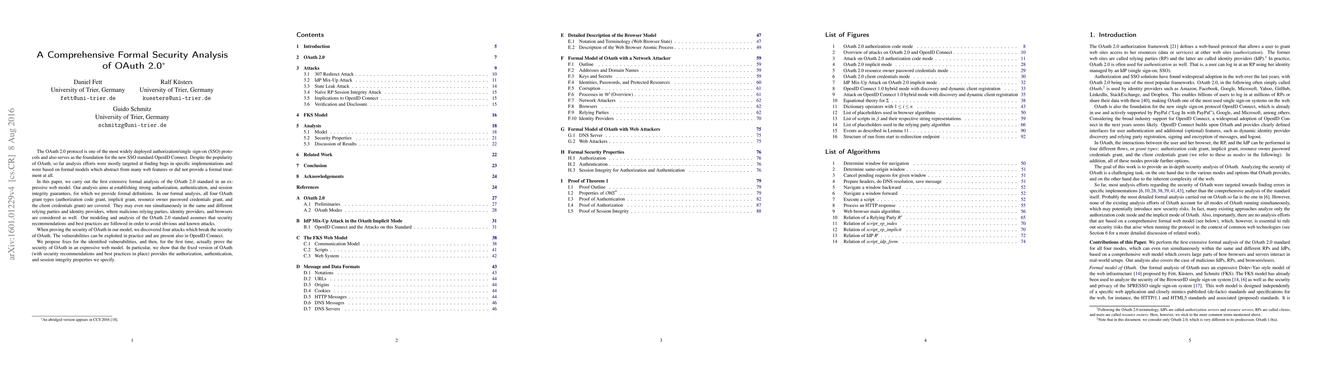 This paper conducts the first extensive formal security analysis of the OAuth 2.0 standard, identifying four vulnerabilities that can break its security. The authors propose fixes and prove the security of the fixed OAuth 2.0 under an expressive web model, assuming adherence to security best practices.