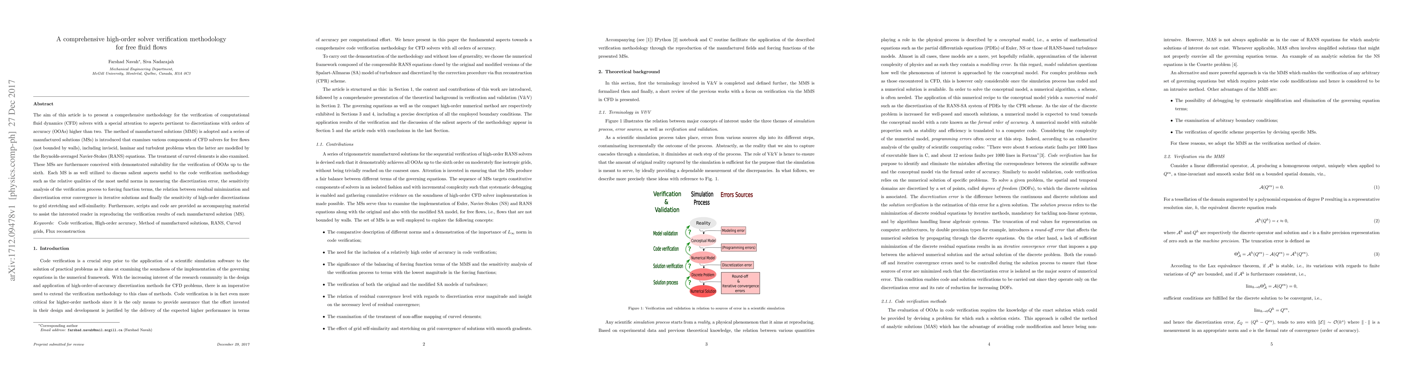 The aim of this article is to present a comprehensive methodology for the verification of computational fluid dynamics (CFD) solvers with a special attention to aspects pertinent to discretizations with orders of accuracy (OOAs) higher than two. The method of manufactured solutions (MMS) is adopted and a series of manufactured solutions (MSs) is introduced that examines various components of CFD solvers for free flows (not bounded by walls), including inviscid, laminar and turbulent problems when the latter are modelled by the Reynolds-averaged Navier-Stokes (RANS) equations. The treatment of curved elements is also examined. These MSs are furthermore conceived with demonstrated suitability for the verification of OOAs up to the sixth. Each MS is as well utilized to discuss salient aspects useful to the code verification methodology such as the relative qualities of the most useful norms in measuring the discretization error, the sensitivity analysis of the verification process to forcing function terms, the relation between residual minimization and discretization error convergence in iterative solutions and finally the sensitivity of high-order discretizations to grid stretching and self-similarity. Furthermore, scripts and code are provided as accompanying material to assist the interested reader in reproducing the verification results of each manufactured solution (MS).