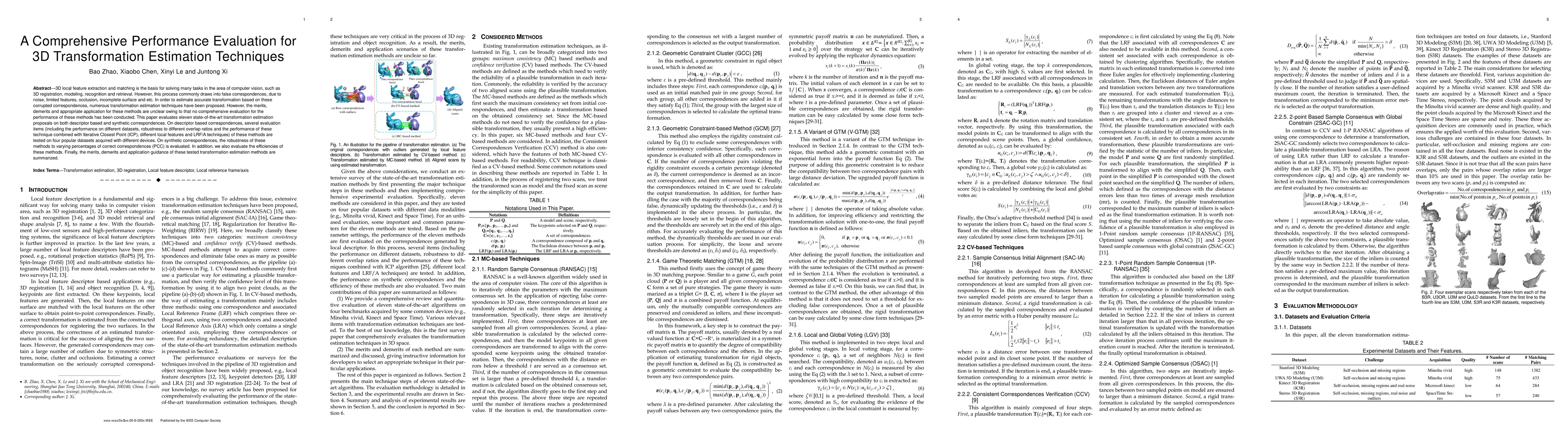 This paper evaluates 11 state-of-the-art transformation estimation techniques for 3D object recognition and modeling, assessing their performance, robustness, and efficiency in various scenarios.