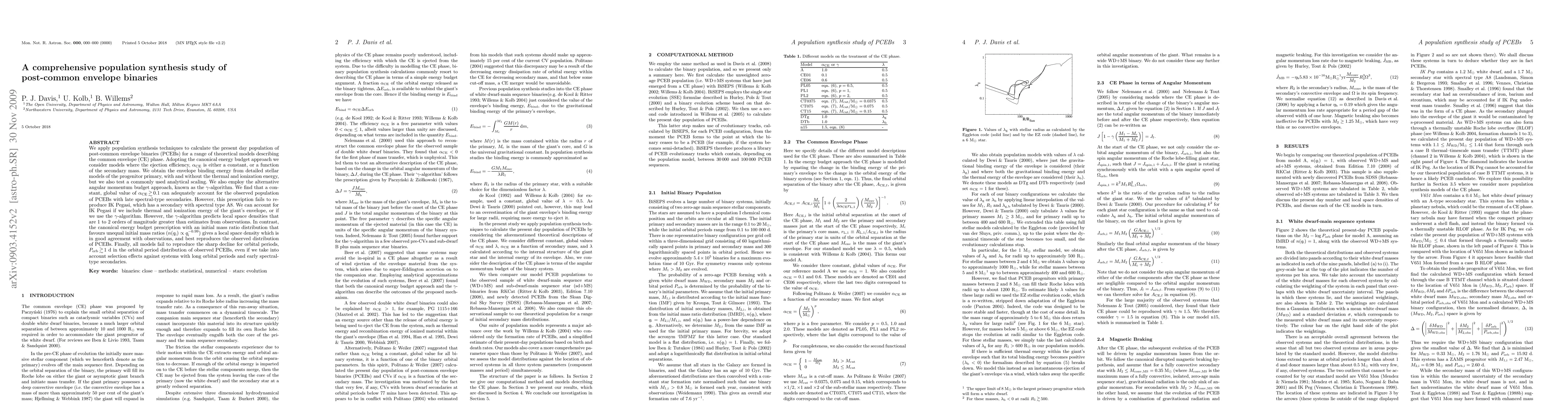 We apply population synthesis techniques to calculate the present day population of post-common envelope binaries (PCEBs) for a range of theoretical models describing the common envelope (CE) phase. Adopting the canonical energy budget approach we consider models where the ejection efficiency, $\alpha_{\rmn{CE}}$ is either a constant, or a function of the secondary mass. We obtain the envelope binding energy from detailed stellar models of the progenitor primary, with and without the thermal and ionization energy, but we also test a commonly used analytical scaling. We also employ the alternative angular momentum budget approach, known as the $\gamma$-algorithm. We find that a constant, global value of $\alpha_{\rmn{CE}} \ga 0.1$ can adequately account for the observed population of PCEBs with late spectral-type secondaries. However, this prescription fails to reproduce IK Pegasi, which has a secondary with spectral type A8. We can account for IK Pegasi if we include thermal and ionization energy of the giant's envelope, or if we use the $\gamma$-algorithm. However, the $\gamma$-algorithm predicts local space densities that are 1 to 2 orders of magnitude greater than estimates from observations. In contrast, the canonical energy budget prescription with an initial mass ratio distribution that favours unequal initial mass ratios gives a local space density which is in good agreement with observations, and best reproduces the observed distribution of PCEBs. Finally, all models fail to reproduce the sharp decline for orbital periods, $P_{\rmn{orb}} \ga 1$ d in the orbital period distribution of observed PCEBs, even if we take into account selection effects against systems with long orbital periods and early spectral-type secondaries.