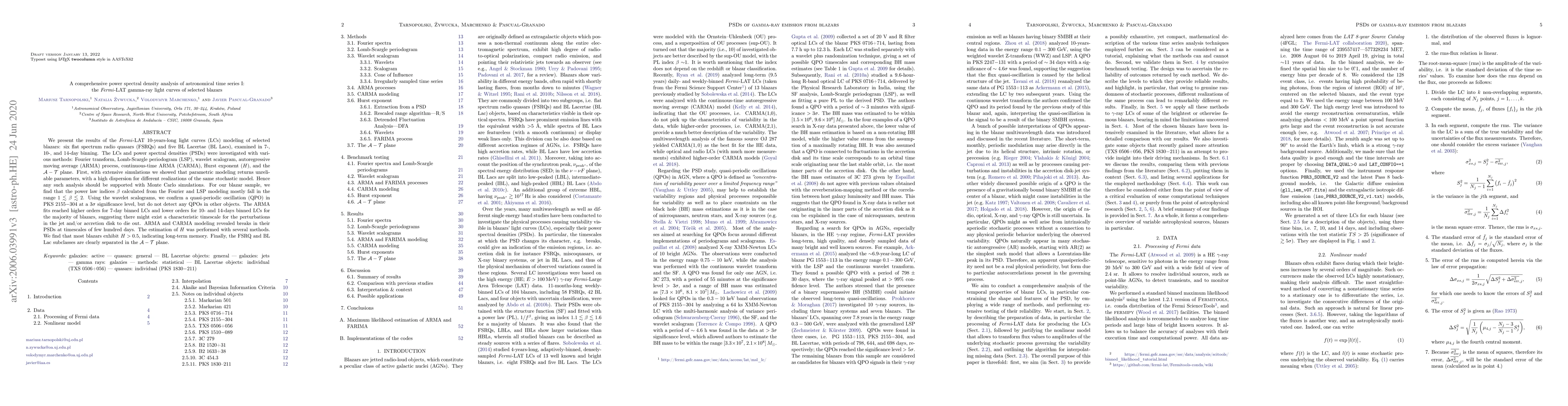 We present the results of the \textit{Fermi}-LAT 10-years-long light curves (LCs) modeling of selected blazars: six flat spectrum radio quasars (FSRQs) and five BL Lacertae (BL Lacs), examined in 7-, 10-, and 14-day binning. The LCs and power spectral densities (PSDs) were investigated with various methods: Fourier transform, Lomb-Scargle periodogram (LSP), wavelet scalogram, autoregressive moving average (ARMA) process, continuous-time ARMA (CARMA), Hurst exponent ($H$), and the $\mathcal{A}-\mathcal{T}$ plane. First, with extensive simulations we showed that parametric modeling returns unreliable parameters, with a high dispersion for different realizations of the same stochastic model. Hence any such analysis should be supported with Monte Carlo simulations. For our blazar sample, we find that the power law indices $\beta$ calculated from the Fourier and LSP modeling mostly fall in the range $1\lesssim\beta\lesssim 2$. Using the wavelet scalograms, we confirm a quasi-periodic oscillation (QPO) in PKS~2155$-$304 at a $3\sigma$ significance level, but do not detect any QPOs in other objects. The ARMA fits reached higher orders for 7-day binned LCs and lower orders for 10- and 14-days binned LCs for the majority of blazars, suggesting there might exist a characteristic timescale for the perturbations in the jet and/or accretion disk to die out. ARMA and CARMA modeling revealed breaks in their PSDs at timescales of few hundred days. The estimation of $H$ was performed with several methods. We find that most blazars exhibit $H > 0.5$, indicating long-term memory. Finally, the FSRQ and BL Lac subclasses are clearly separated in the $\mathcal{A}-\mathcal{T}$ plane.