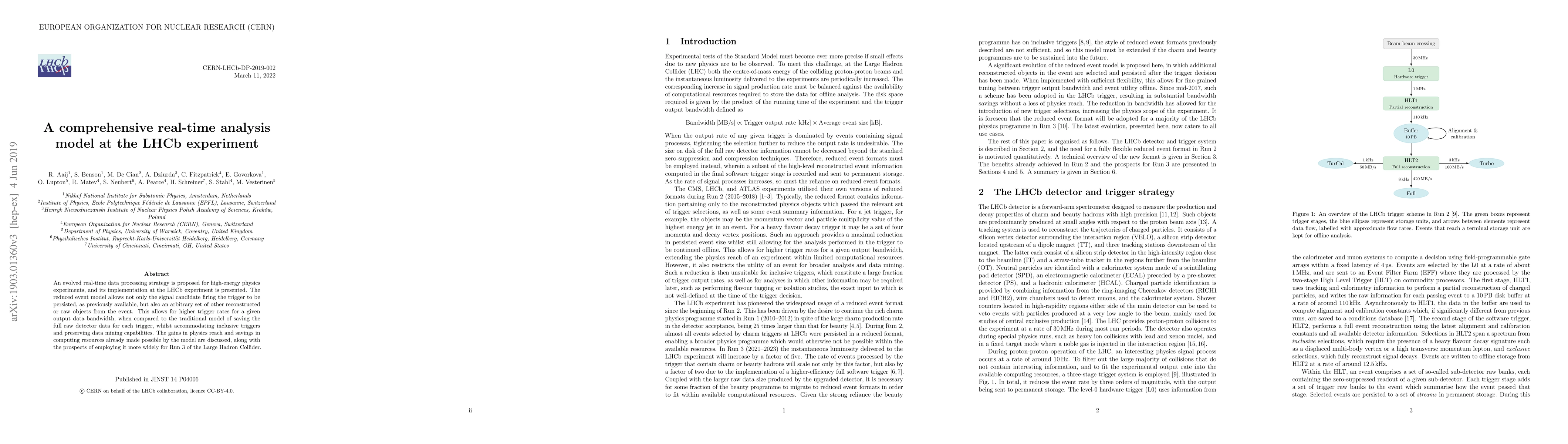 The paper proposes an advanced real-time data processing model for high-energy physics experiments, implemented at the LHCb experiment. This model, called the reduced event model, allows for higher trigger rates with less data output, preserving crucial data for analysis while reducing computing resources needed. It enables inclusive triggers and maintains data mining capabilities, demonstrating increased physics reach and potential for wider application in future LHC runs.