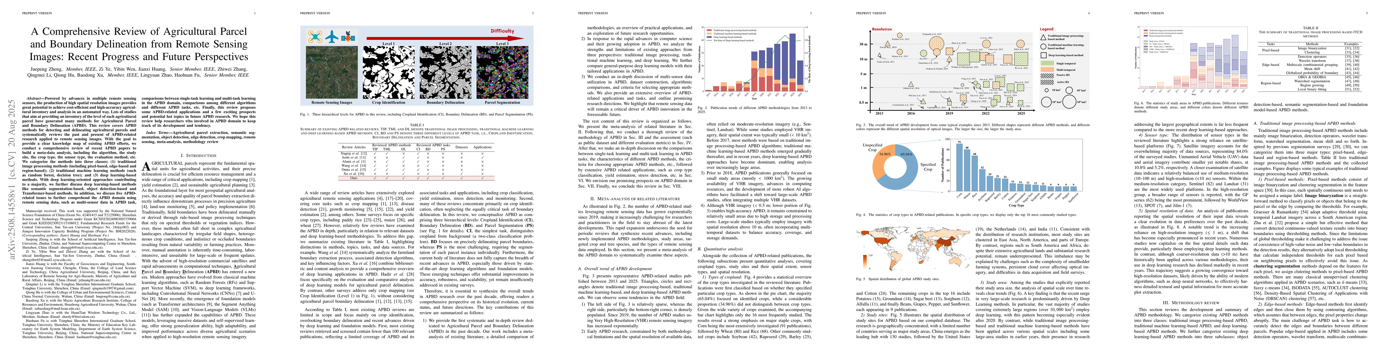 This research conducts a comprehensive review of Agricultural Parcel and Boundary Delineation (APBD) methods using remote sensing images, categorizing them into traditional image processing, traditional machine learning, and deep learning-based methods. It also discusses five APBD-related issues and proposes future research directions.