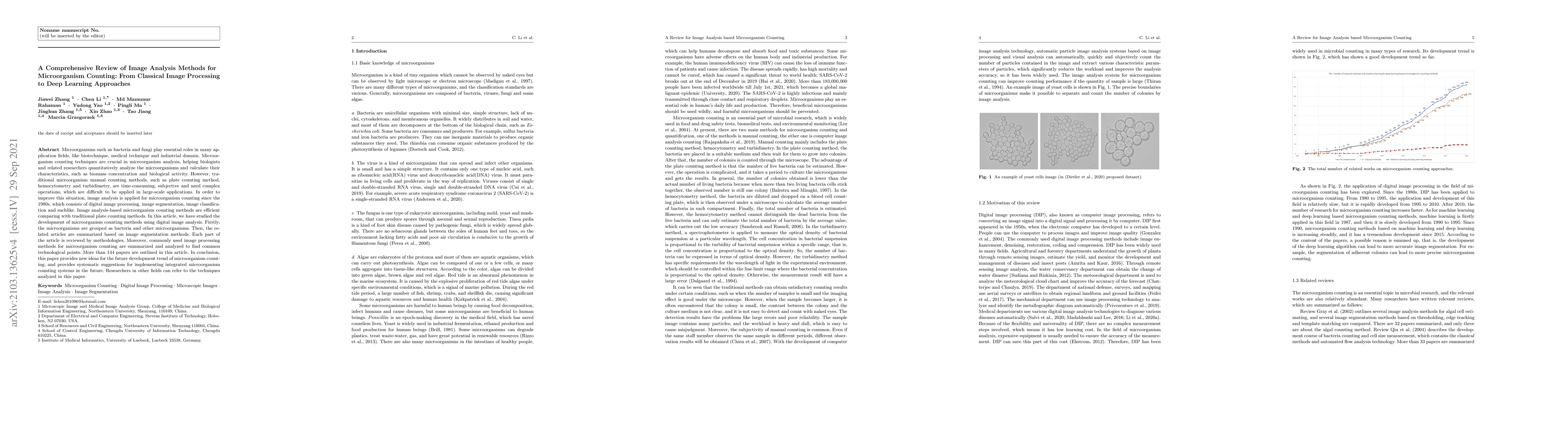 This paper reviews the evolution of microorganism counting methods from classical techniques to advanced deep learning approaches, emphasizing the efficiency of image analysis in automating and improving counting accuracy. It systematically analyzes over 144 papers, focusing on segmentation and image processing techniques, and provides insights for future integrated counting systems and cross-field applications.