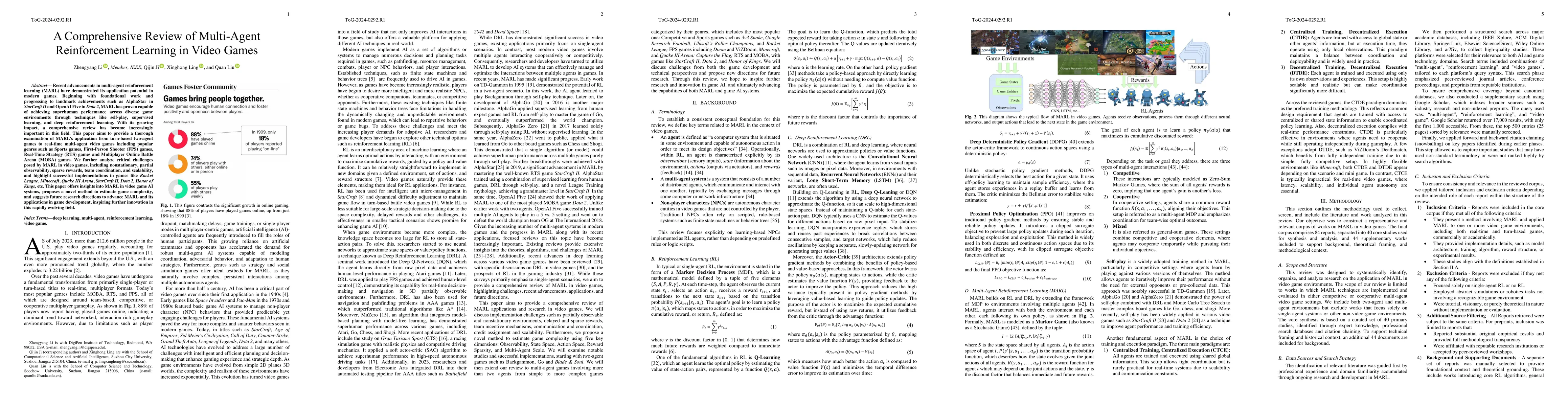 Recent advancements in multi-agent reinforcement learning (MARL) have demonstrated its application potential in modern games. Beginning with foundational work and progressing to landmark achievements such as AlphaStar in StarCraft II and OpenAI Five in Dota 2, MARL has proven capable of achieving superhuman performance across diverse game environments through techniques like self-play, supervised learning, and deep reinforcement learning. With its growing impact, a comprehensive review has become increasingly important in this field. This paper aims to provide a thorough examination of MARL's application from turn-based two-agent games to real-time multi-agent video games including popular genres such as Sports games, First-Person Shooter (FPS) games, Real-Time Strategy (RTS) games and Multiplayer Online Battle Arena (MOBA) games. We further analyze critical challenges posed by MARL in video games, including nonstationary, partial observability, sparse rewards, team coordination, and scalability, and highlight successful implementations in games like Rocket League, Minecraft, Quake III Arena, StarCraft II, Dota 2, Honor of Kings, etc. This paper offers insights into MARL in video game AI systems, proposes a novel method to estimate game complexity, and suggests future research directions to advance MARL and its applications in game development, inspiring further innovation in this rapidly evolving field.