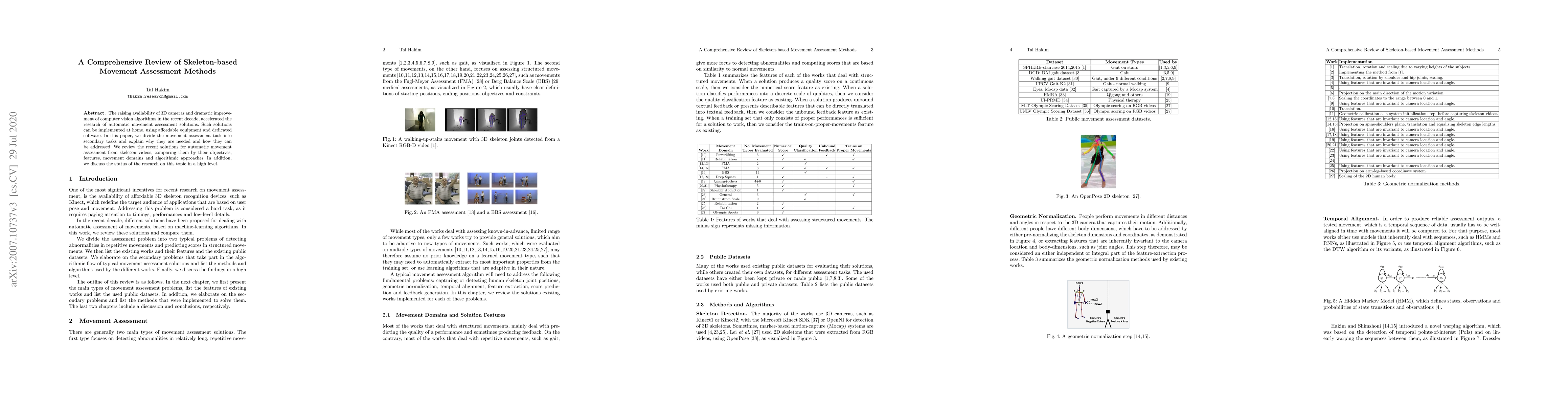 This paper reviews recent advancements in skeleton-based movement assessment using 3D cameras and computer vision algorithms, categorizing and comparing various automatic assessment methods based on objectives, features, domains, and algorithmic approaches. It also provides a high-level overview of the current state of research in this field.