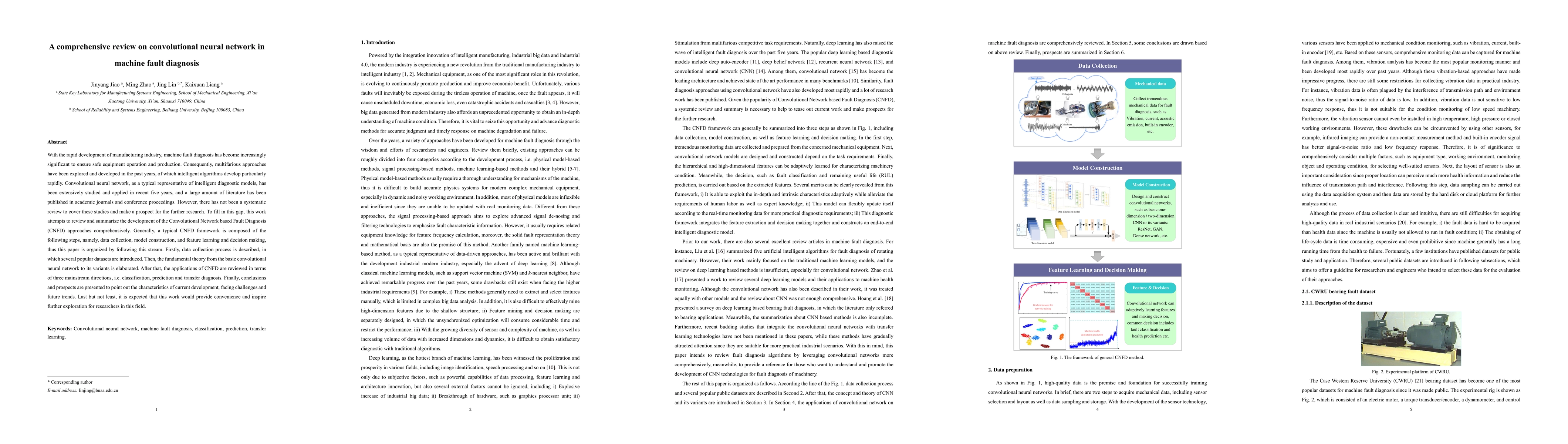 This paper provides a comprehensive review of convolutional neural networks (CNNs) applied to machine fault diagnosis, covering data collection, model construction, and feature learning. It analyzes current trends, challenges, and future directions in the field of CNN-based fault diagnosis.