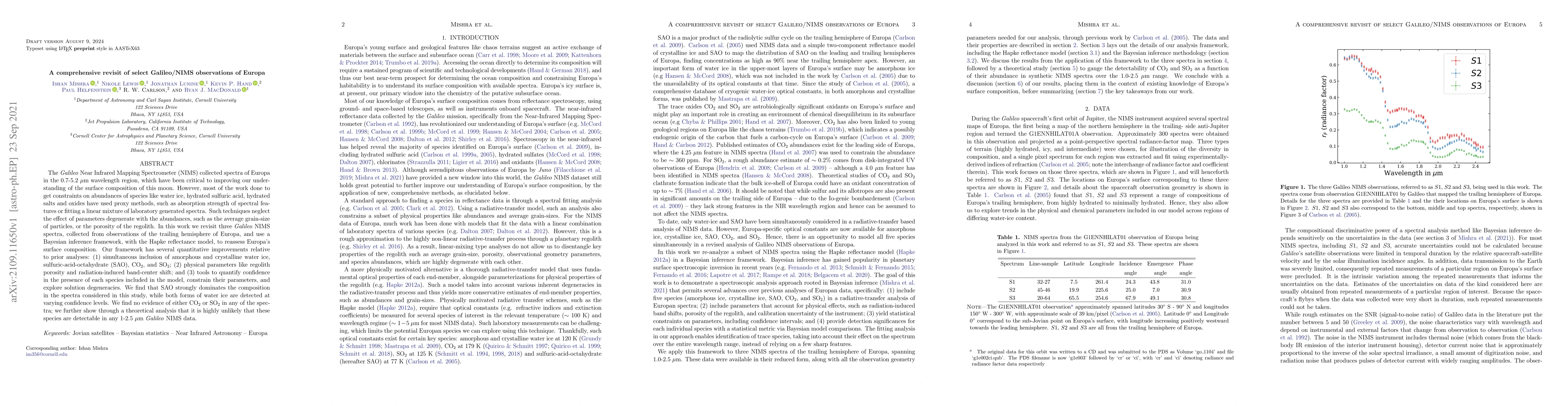 This study revisits Galileo NIMS spectra of Europa's trailing hemisphere using a Bayesian inference framework and the Hapke reflectance model to reassess the surface composition. The findings indicate that hydrated sulfuric acid dominates, while both amorphous and crystalline water ice are detected, with no evidence of CO$_2$ or SO$_2$.