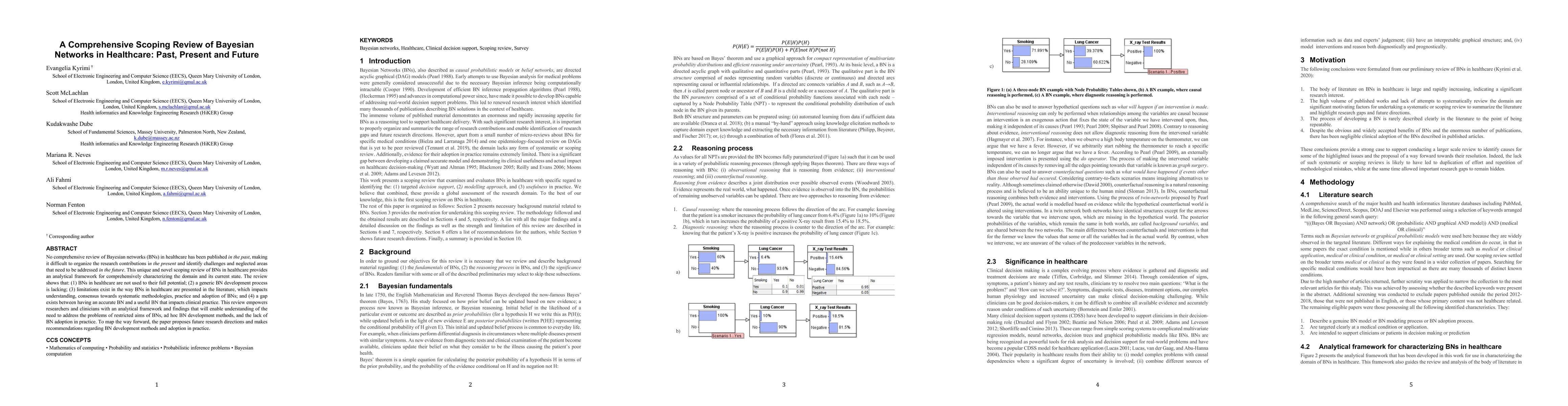 This scoping review comprehensively characterizes the current state of Bayesian networks (BNs) in healthcare, highlighting their underutilization, lack of systematic development processes, and challenges in literature presentation. It proposes future research directions and recommendations to enhance BN adoption and development in clinical practice.