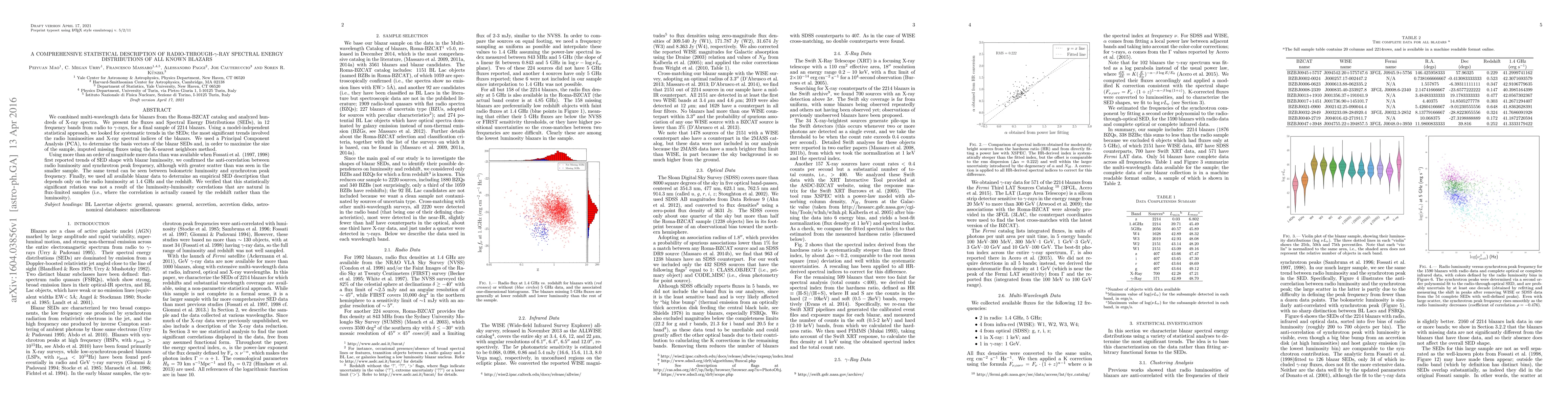 We combined multi-wavelength data for blazars from the Roma-BZCAT catalog and analyzed hundreds of X-ray spectra. We present the fluxes and Spectral Energy Distributions (SEDs), in 12 frequency bands from radio to $\gamma$-rays, for a final sample of 2214 blazars. Using a model-independent statistical approach, we looked for systematic trends in the SEDs; the most significant trends involved the radio luminosities and X-ray spectral indices of the blazars. We used a Principal Component Analysis (PCA), to determine the basis vectors of the blazar SEDs and, in order to maximize the size of the sample, imputed missing fluxes using the K-nearest neighbors method. Using more than an order of magnitude more data than was available when Fossati et al. (1997, 1998) first reported trends of SED shape with blazar luminosity, we confirmed the anti-correlation between radio luminosity and synchrotron peak frequency, although with greater scatter than was seen in the smaller sample. The same trend can be seen between bolometric luminosity and synchrotron peak frequency. Finally, we used all available blazar data to determine an empirical SED description that depends only on the radio luminosity at 1.4~GHz and the redshift. We verified that this statistically significant relation was not a result of the luminosity-luminosity correlations that are natural in flux-limited samples (i.e., where the correlation is actually caused by the redshift rather than the luminosity).