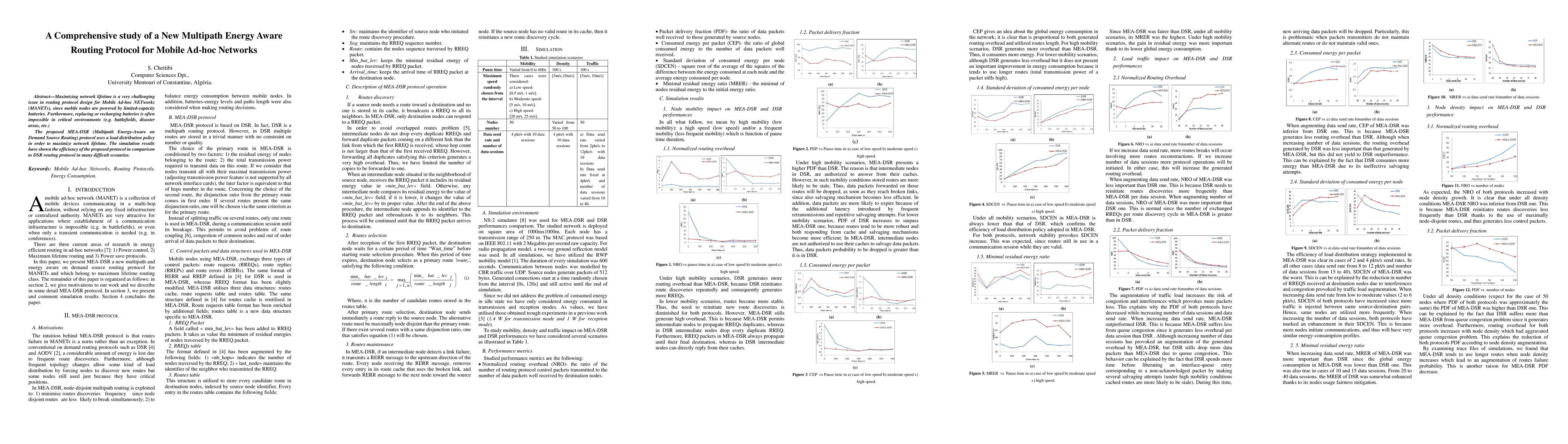 Maximizing network lifetime is a very challenging issue in routing protocol design for Mobile Ad-hoc NETworks (MANETs), since mobile nodes are powered by limited-capacity batteries. Furthermore, replacing or recharging batteries is often impossible in critical environments (e.g. battlefields, disaster areas, etc.) The proposed MEA-DSR (Multipath Energy-Aware on Demand Source Routing) protocol uses a load distribution policy in order to maximize network lifetime. The simulation results have shown the efficiency of the proposed protocol in comparison to DSR routing protocol in many difficult scenarios