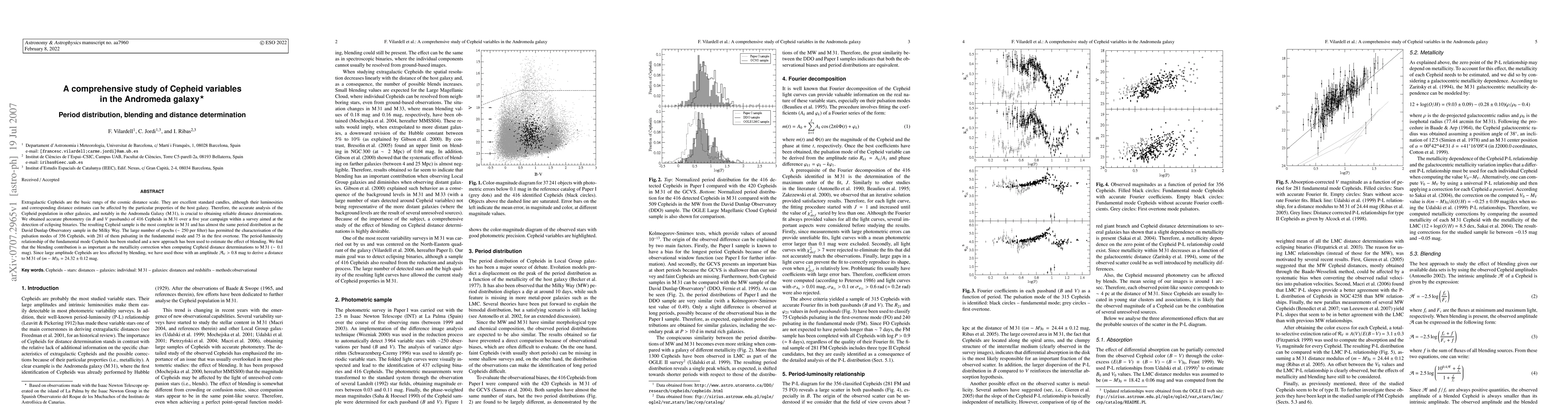 This study provides a comprehensive analysis of Cepheid variables in the Andromeda Galaxy (M31), focusing on period distribution and blending effects. The research utilized a five-year photometric survey to obtain the most complete Cepheid sample in M31, revealing the period-luminosity relationship and the significant impact of blending on distance estimates, leading to a refined distance determination of M31 at (m-M)_0=24.32±0.12 mag.