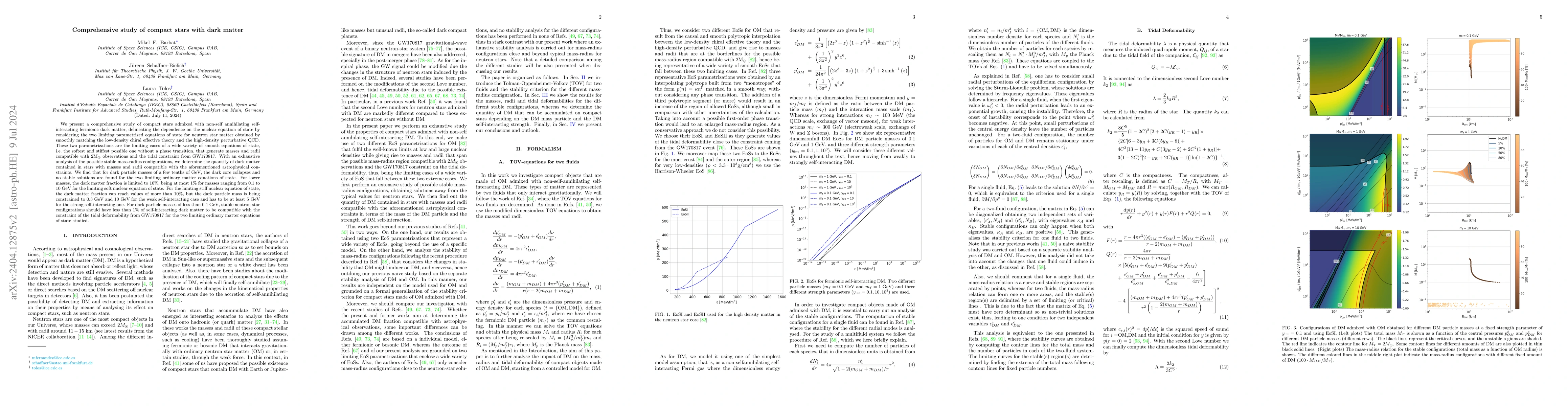 This paper investigates compact stars mixed with non-self-annihilating, self-interacting fermionic dark matter, using two extreme nuclear equations of state. It concludes that dark matter fractions in stable neutron stars are limited to 10% for lower dark particle masses, and collapse occurs for dark particle masses of a few tenths of GeV.