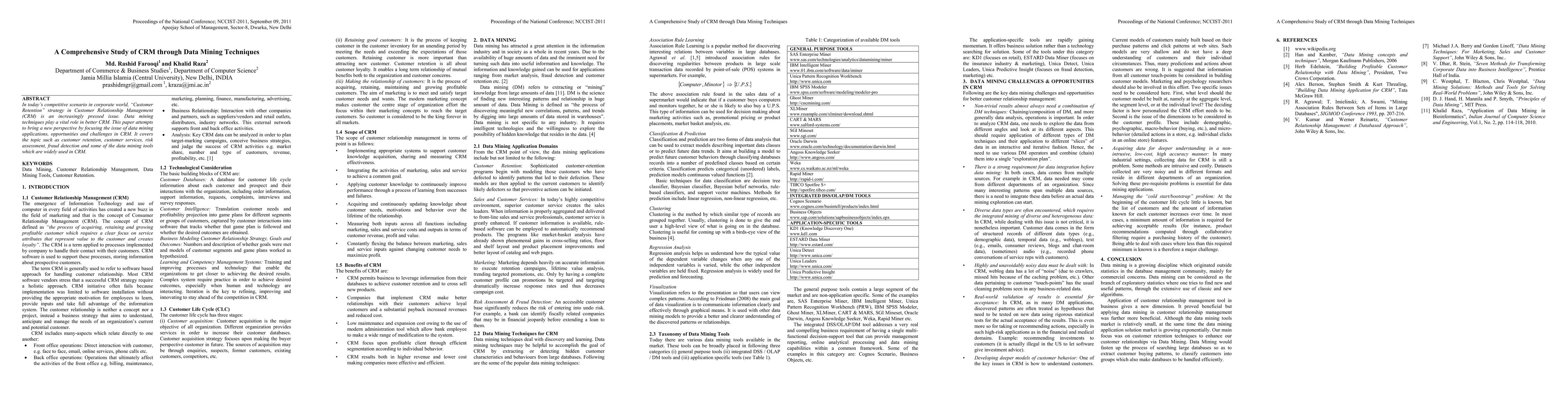 This paper explores the application of data mining techniques to enhance Customer Relationship Management (CRM) strategies, focusing on customer retention, services, risk assessment, and fraud detection, while also discussing associated challenges and popular tools.