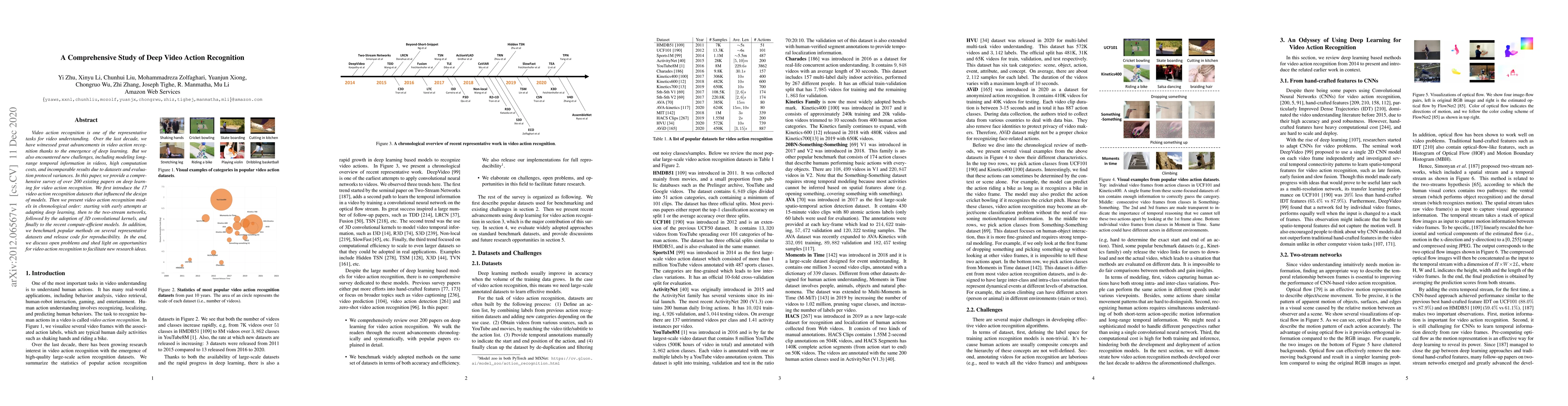 This paper provides a comprehensive survey on deep learning for video action recognition, covering over 200 papers and benchmarking popular methods, while discussing challenges and future opportunities in the field. It also highlights the evolution of models and datasets that have shaped current approaches.