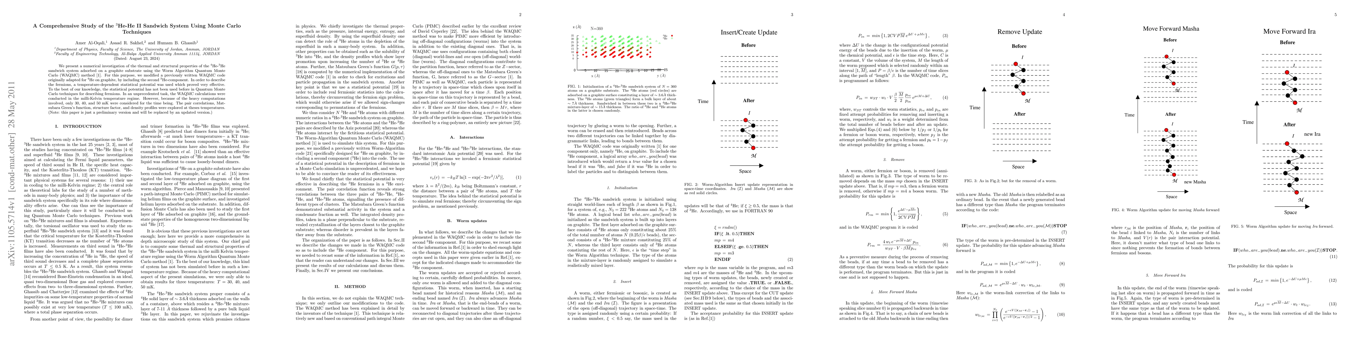We present a numerical investigation of the thermal and structural properties of the $^3$He-He II sandwich system adsorbed on a graphite substrate using the Worm Algorithm Quantum Monte Carlo (WAQMC) method (Boninsegni et al., Phys. Rev. E 74, 036701 (2006)). For this purpose, we modified a previously written WAQMC code originally adapted for $^4$He on graphite, by including the second $^3$He-component. In order to describe the fermions, a temperature-dependent statistical potential was used which proved very effective. To the best of our knowledge, the statistical potential has not been used before in Quantum Monte Carlo techniques for describing fermions. In an unprecedented task, the WAQMC calculations were conducted in the milli-Kelvin temperature regime. However, because of the heavy computations involved, only 30, 40, and 50 mK were considered for the time being. The pair correlations, Matsubara Green's function, structure factor, and density profiles were explored at theses temperatures. (Note: this paper is just a preliminary version and will be replaced by an updated version.