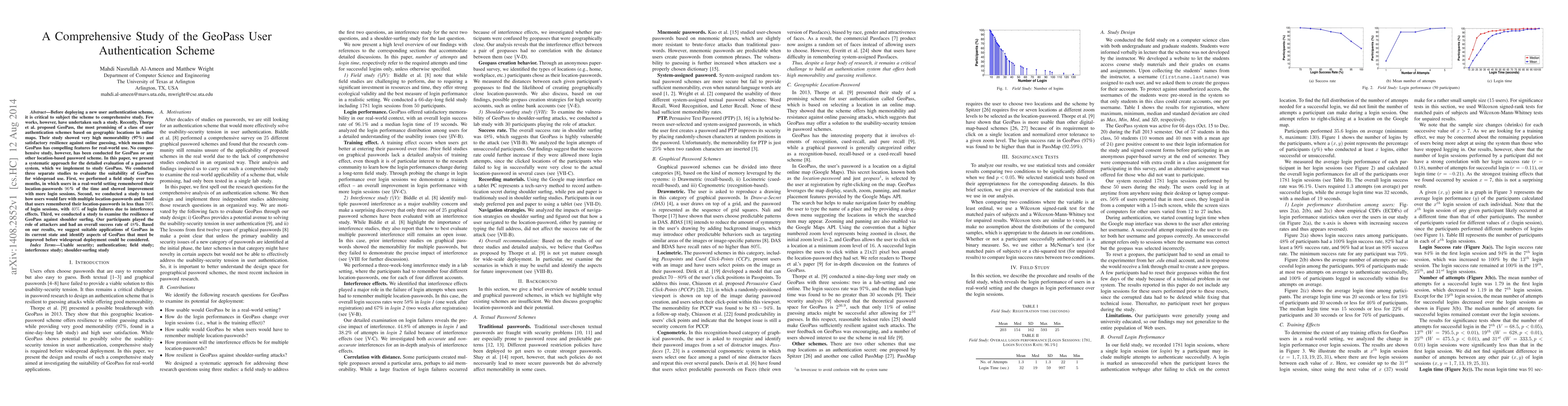 Before deploying a new user authentication scheme, it is critical to subject the scheme to comprehensive study. Few works, however, have undertaken such a study. Recently, Thorpe et al. proposed GeoPass, the most promising of a class of user authentication schemes based on geographic locations in online maps. Their study showed very high memorability (97%) and satisfactory resilience against online guessing, which means that GeoPass has compelling features for real-world use. No comprehensive study, however, has been conducted for GeoPass or any other location-based password scheme. In this paper, we present a systematic approach for the detailed evaluation of a password system, which we implement to study GeoPass. We conducted three separate studies to evaluate the suitability of GeoPass for widespread use. First, we performed a field study over two months, in which users in a real-world setting remembered their location-passwords 96% of the time and showed improvement with more login sessions. Second, we conducted a study to test how users would fare with multiple location-passwords and found that users remembered their location-passwords in less than 70% of login sessions, with 40% of login failures due to interference effects. Third, we conducted a study to examine the resilience of GeoPass against shoulder surfing. Our participants played the role of attackers and had an overall success rate of 48%. Based on our results, we suggest suitable applications of GeoPass in its current state and identify aspects of GeoPass that must be improved before widespread deployment could be considered.