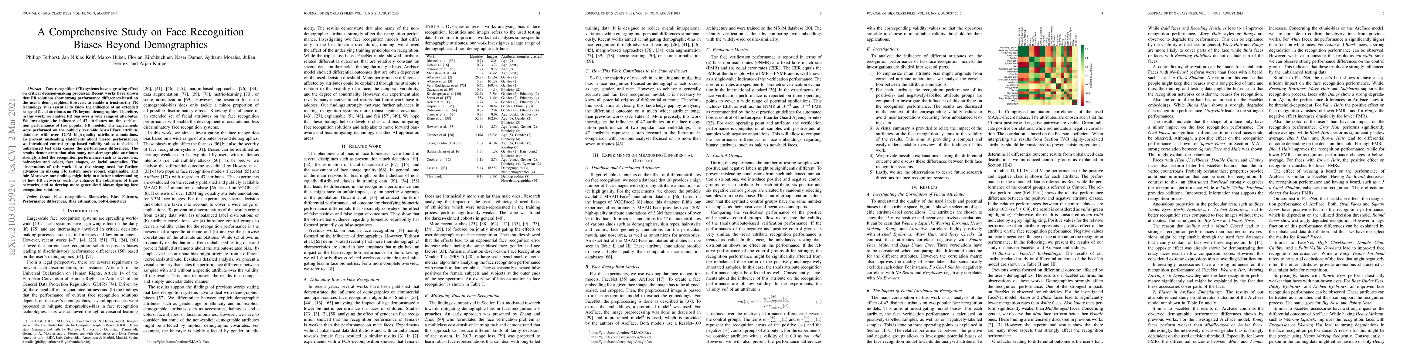 Face recognition (FR) systems have a growing effect on critical decision-making processes. Recent works have shown that FR solutions show strong performance differences based on the user's demographics. However, to enable a trustworthy FR technology, it is essential to know the influence of an extended range of facial attributes on FR beyond demographics. Therefore, in this work, we analyse FR bias over a wide range of attributes. We investigate the influence of 47 attributes on the verification performance of two popular FR models. The experiments were performed on the publicly available MAADFace attribute database with over 120M high-quality attribute annotations. To prevent misleading statements about biased performances, we introduced control group based validity values to decide if unbalanced test data causes the performance differences. The results demonstrate that also many non-demographic attributes strongly affect the recognition performance, such as accessories, hair-styles and colors, face shapes, or facial anomalies. The observations of this work show the strong need for further advances in making FR system more robust, explainable, and fair. Moreover, our findings might help to a better understanding of how FR networks work, to enhance the robustness of these networks, and to develop more generalized bias-mitigating face recognition solutions.