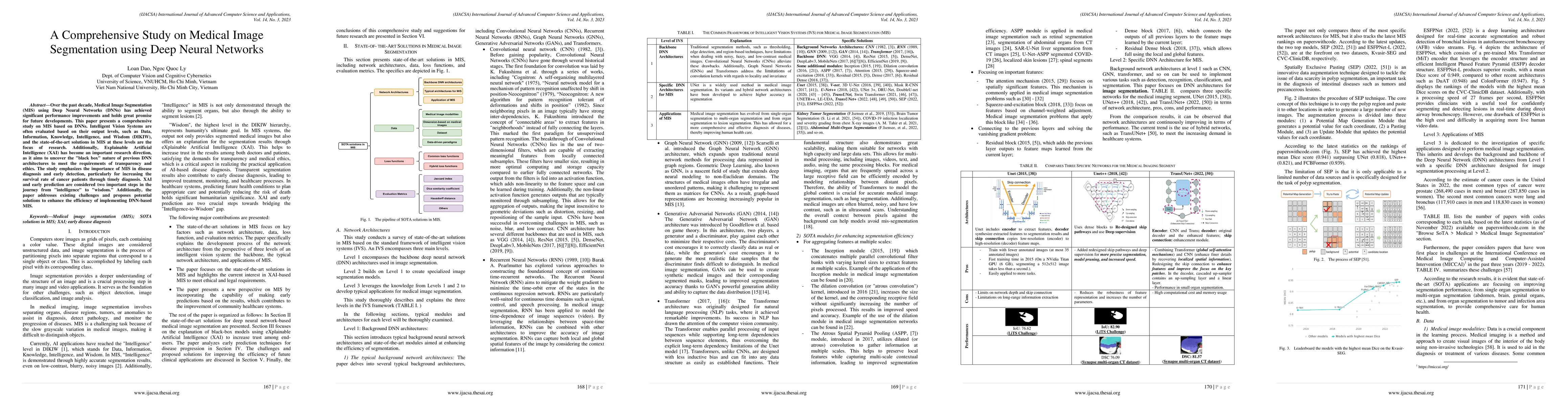 The paper presents a comprehensive study on Medical Image Segmentation (MIS) using Deep Neural Networks (DNNs), focusing on evaluating intelligent vision systems based on the DIKIW model and incorporating Explainable Artificial Intelligence (XAI) to address the 'black box' nature of previous DNN architectures.